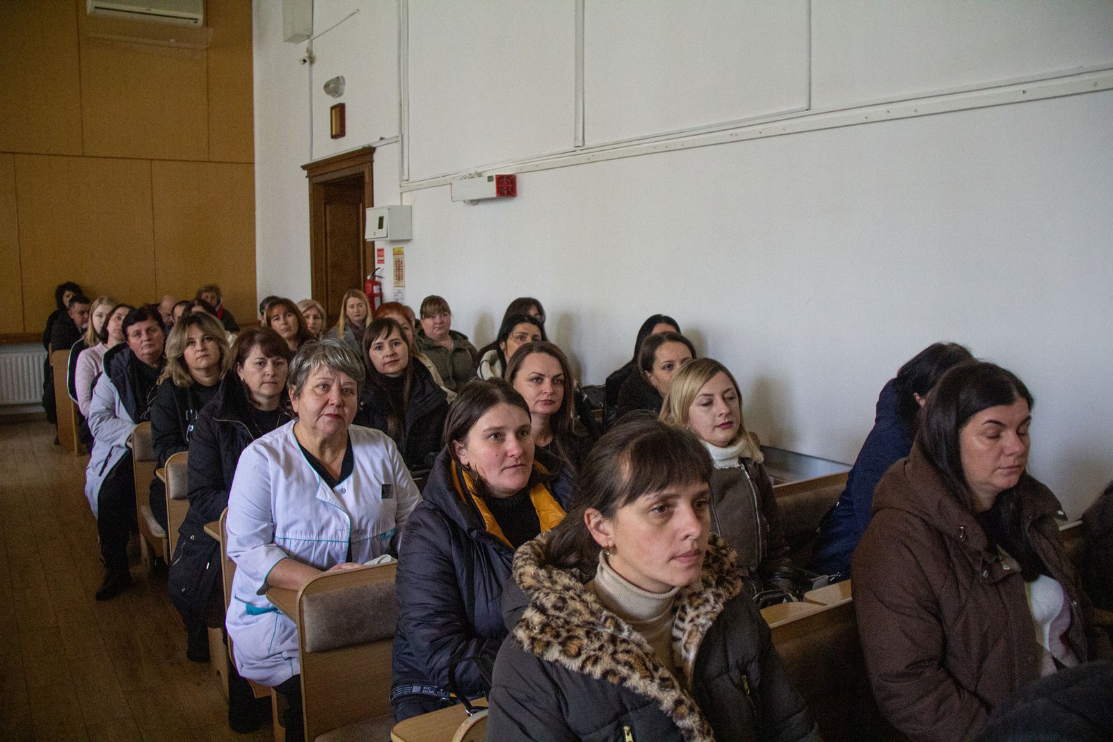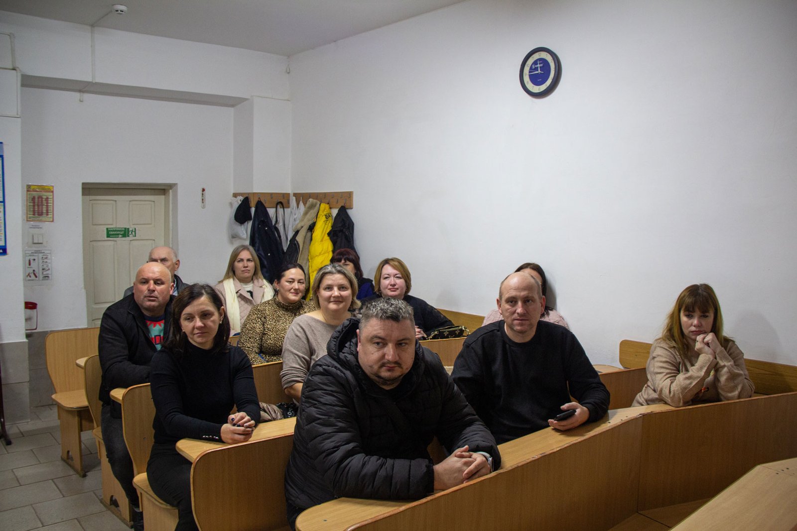 Після відзначення календарних свят: хвилиною мовчання за загиблими – Дня Гідності і Свободи та привітанням з Введенням у храм Пресвятої Богородиці спілкування проходило у два заходи: поки батьки майбутніх медсестер і акушерок в актовій залі зустрічалися з директором ІФМФК Володимиром СТАСЮКОМ і заступницею директора з навчально-методичної роботи Іриною КОНСТАНТЮК, батьки майбутніх фельдшерів йшли на години спілкування з керівниками груп в аудиторіях. А потім навпаки.