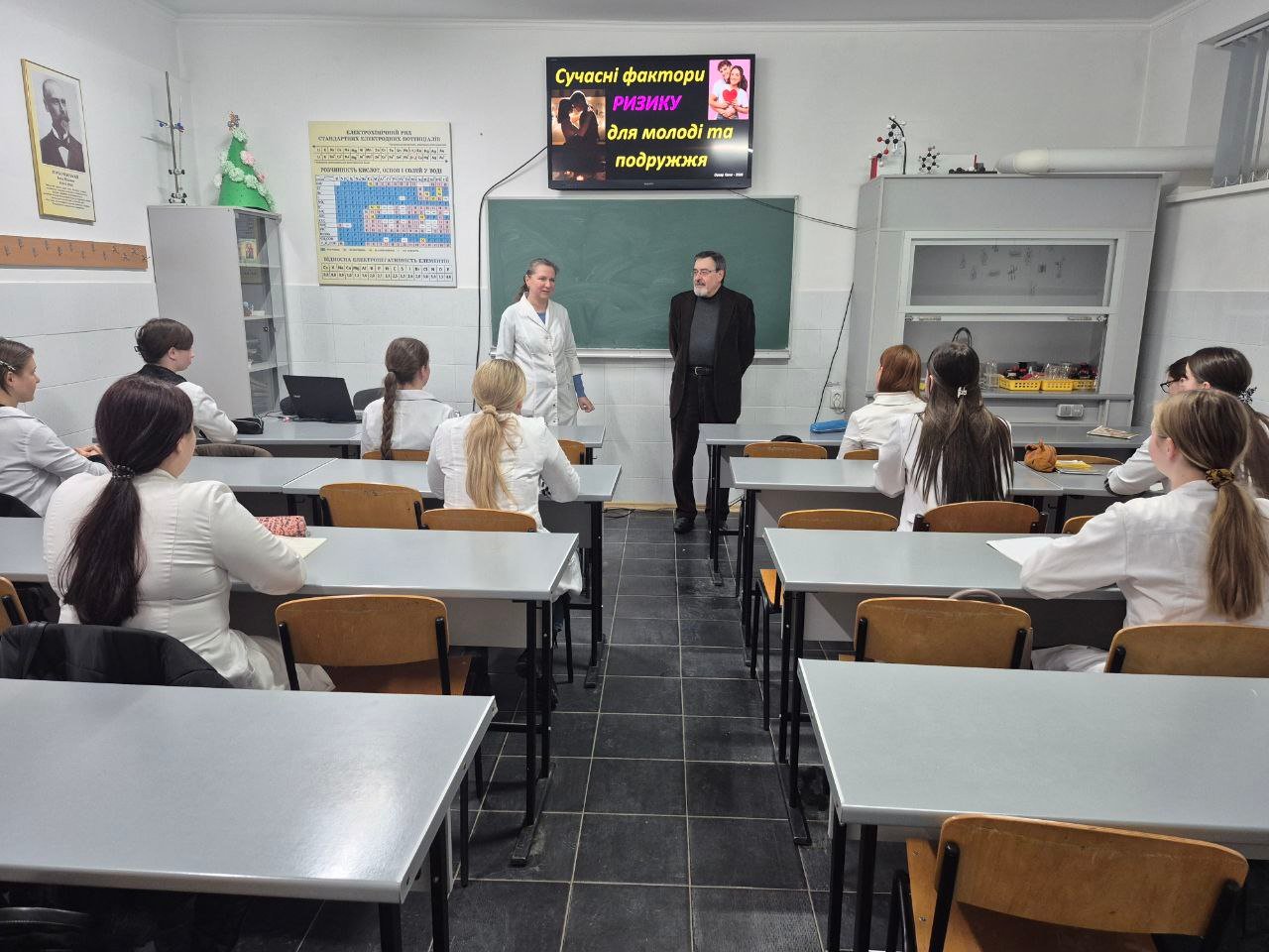Під час занять-консультацій у здобувачів освіти другого курсу ОПП Сестринська справа і Акушерська справа практичний психолог Карпатського національного університету імені Василя Стефаника, кандидат богословських наук, фахівець з біоетики Оскар Пена і заступниця директора з виховної роботи Наталія Мальованчук запропонували на обговорення важливу і для майбутніх медичних працівників, і просто для молодих людей тему: «Сучасні фактори ризику для молоді та подружжя».