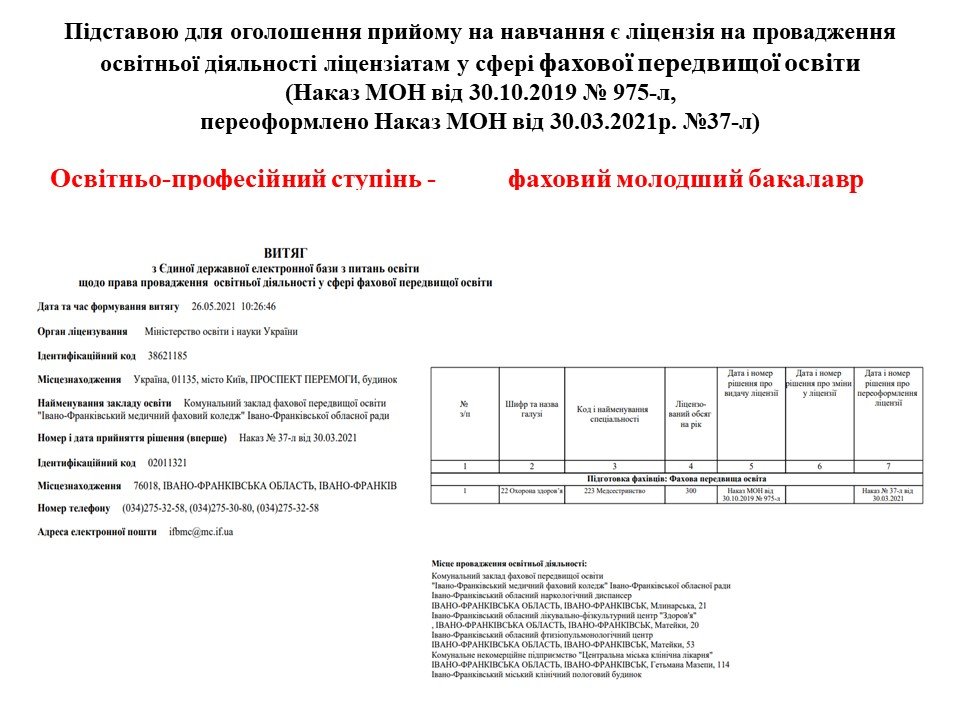 І здобути цю освіту варто в ІФМФК. Ліцензійний обсяг набору - 300 студентів на спеціальність "медсестринство". Після 9-го класу це три групи спеціалізації "Лікувальна справа" (фельдшери) - 69 місць регіонального замовлення і п'ять груп спеціалізації "Сестринська справа" - 116 місць регіонального замовлення. Після 11-го класу навчання лише на контрактній основі, до 30 осіб на спеціалізації "Акушерська справа" і до 26 на лікувальній і сестринській справі. Щодо останніх, то не буде окремої групи, їх добиратимуть по двоє студентів до груп ІІ курсу і вони вчитимуться за індивідуальним планом. Терміни навчання у коледжі для вступників після 9-го класу - 4 роки, після 11-го - 3 роки (раніше акушерки вчилися 2 роки 5 місяців).