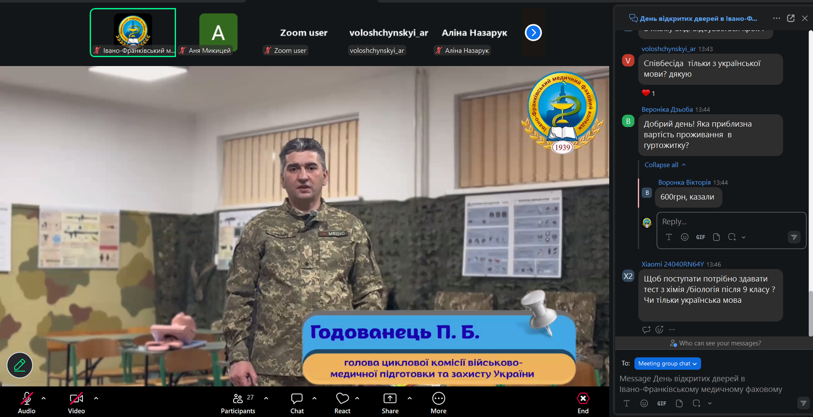 Попри відключення світла в останні дні і складні погодні умови, більше 200 учасників долучилися до Дня відкритих дверей (Дня майбутнього студента) в КЗФПО «Івано-Франківський медичний фаховий коледж» ІФОР (вул. Гетьмана Мазепи, 165), який відбувся у неділю,25 січня. Проходив він у змішаному форматі: очно у коледжі і дистанційно на платформі Zoom. Був рекордним і за кількістю учасників, і за тривалістю – понад дві години.