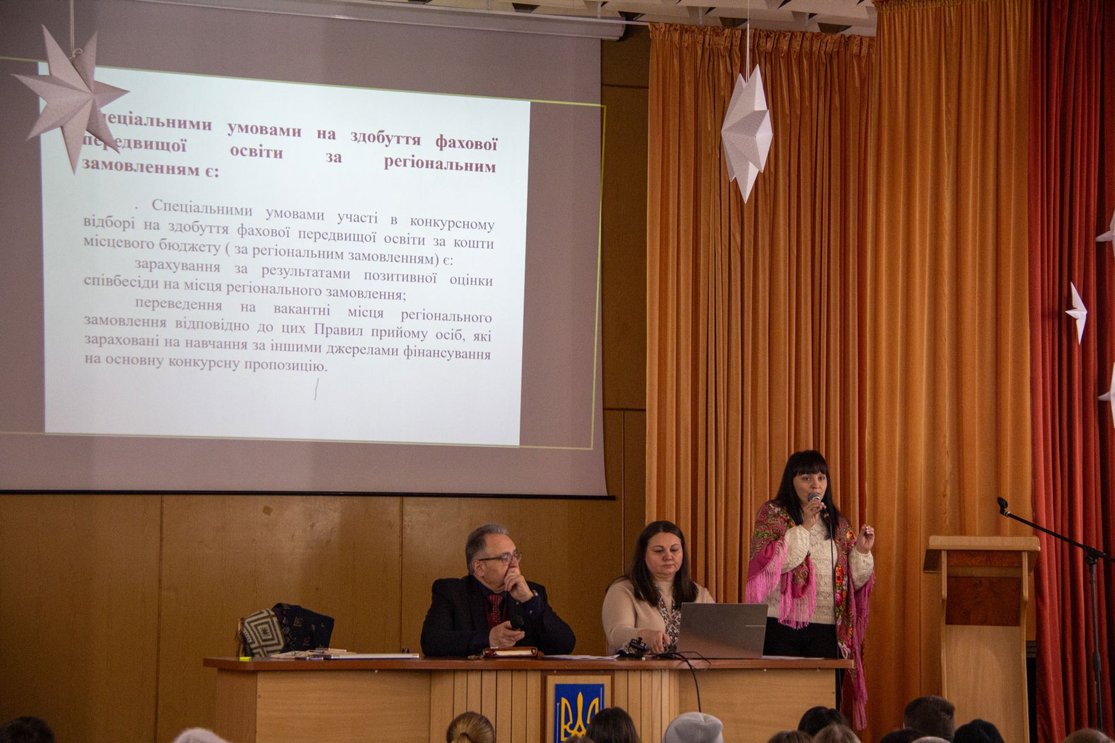 Хоча наразі ще не затверджений Порядок прийому до коледжу, про основні положення його проєкту і цьогорічну вступну кампанію абітурієнтів поінформувала секретар приймальної комісії Альона ВАЛОВІНА. Ліцензійний обсяг – 300 осіб, основна спеціальність – медсестринство, три ОПП: Сестринська справа, Лікувальна справа, Акушерська справа. Регіональне замовлення на базі середньої загальної освіти (після 9-го класу) на сестринську справу – 94, лікувальну справу – 93, акушерську справу – 23. До слова, таке регіональне замовлення – 210 осіб – уже третій рік. На базі повної середньої загальної освіти (після 11-го класу) – 20 місць, тільки контрактне навчання, будуть вчитися на рік менше за вступників після 9-го класу.