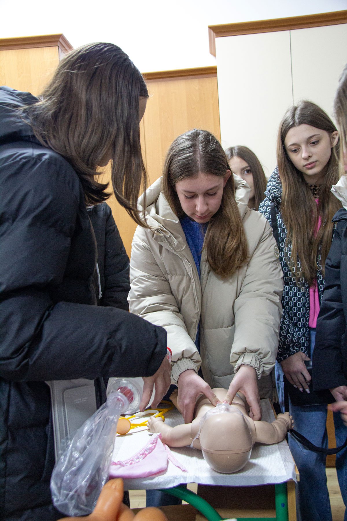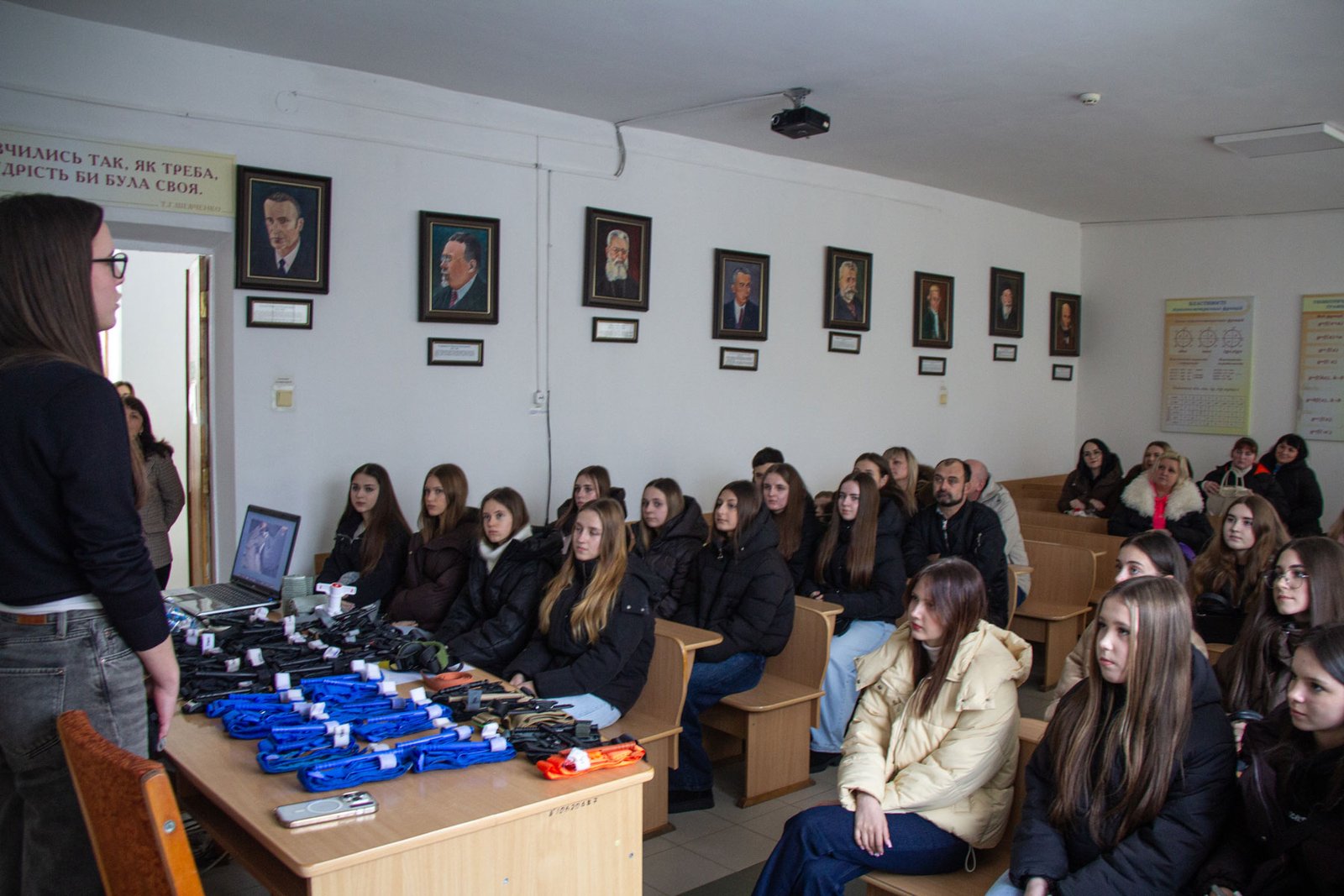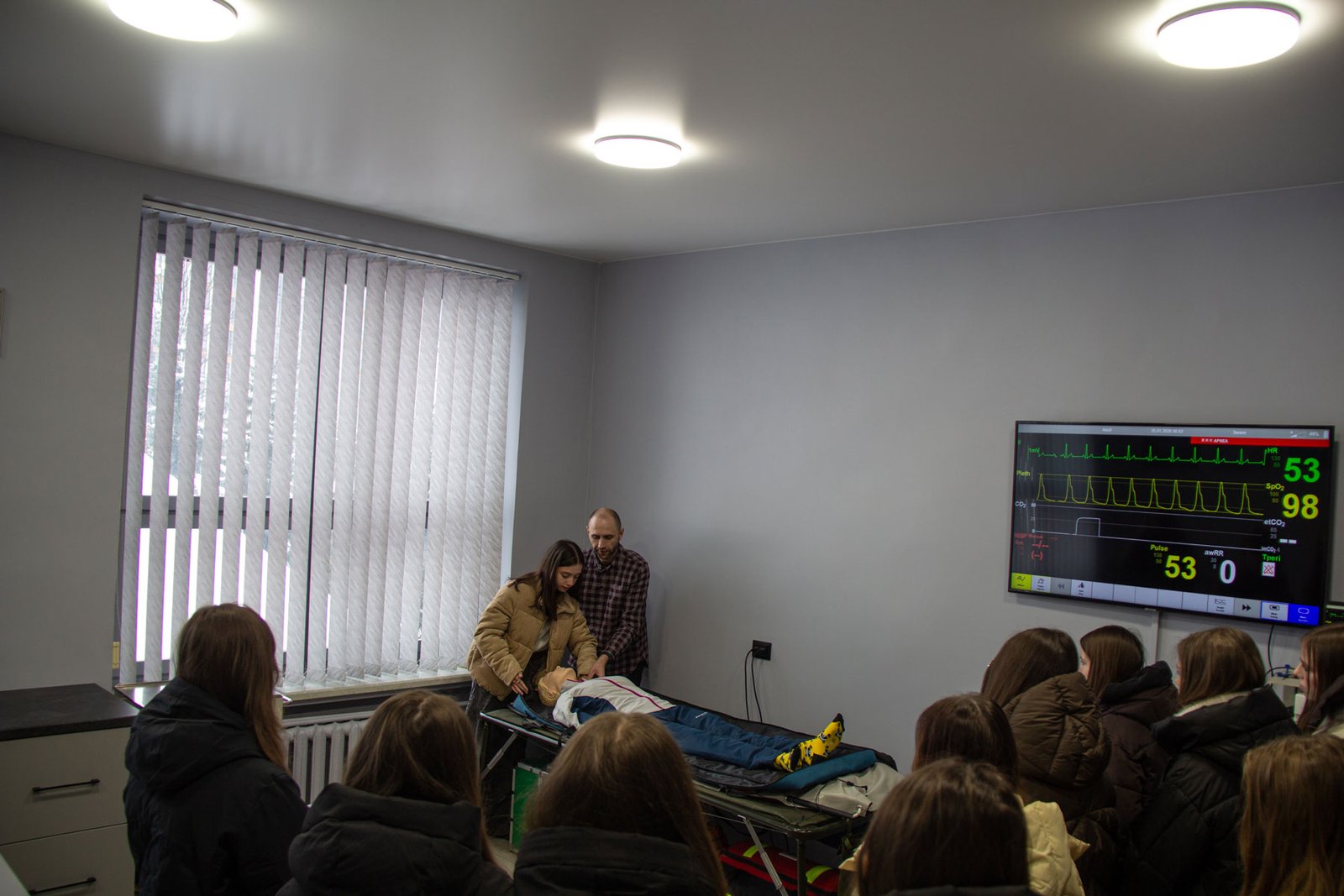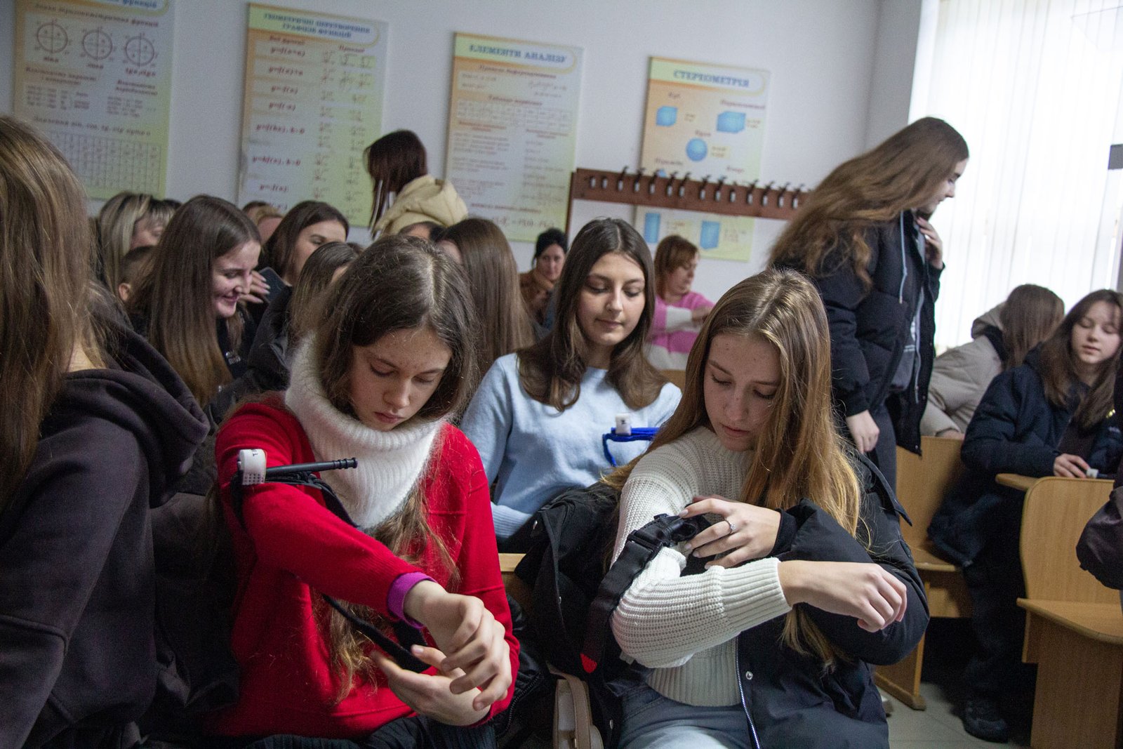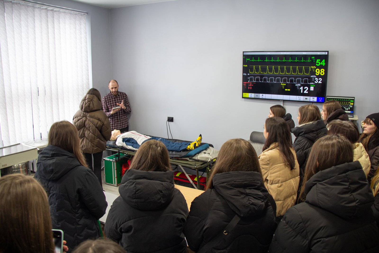 На завершення, після двогодинного спілкування у залі, для майбутніх абітурієнтів завідувачі відділень провели екскурсію коледжем. Діяли чотири локації, де майбутні студенти могли не лише побачити навчальні аудиторії, тренажерні зали, а й самі спробували накладати турнікети чи виконувати інші маніпуляції. Найактивніші теж отримали призи. Подбали і про тих, хто приєднався дистанційно: здійснити екскурсію коледжем допоміг відеоролик.