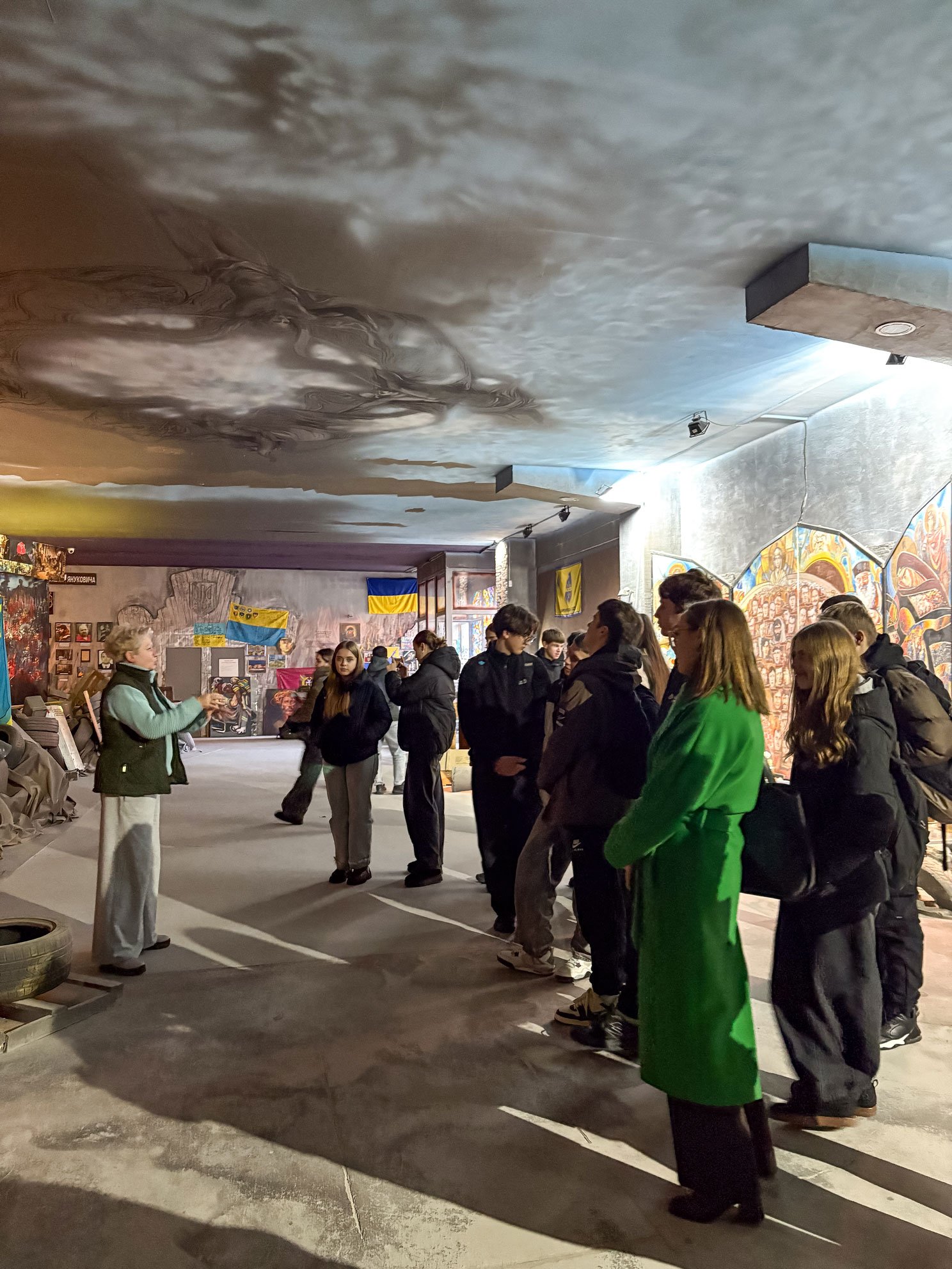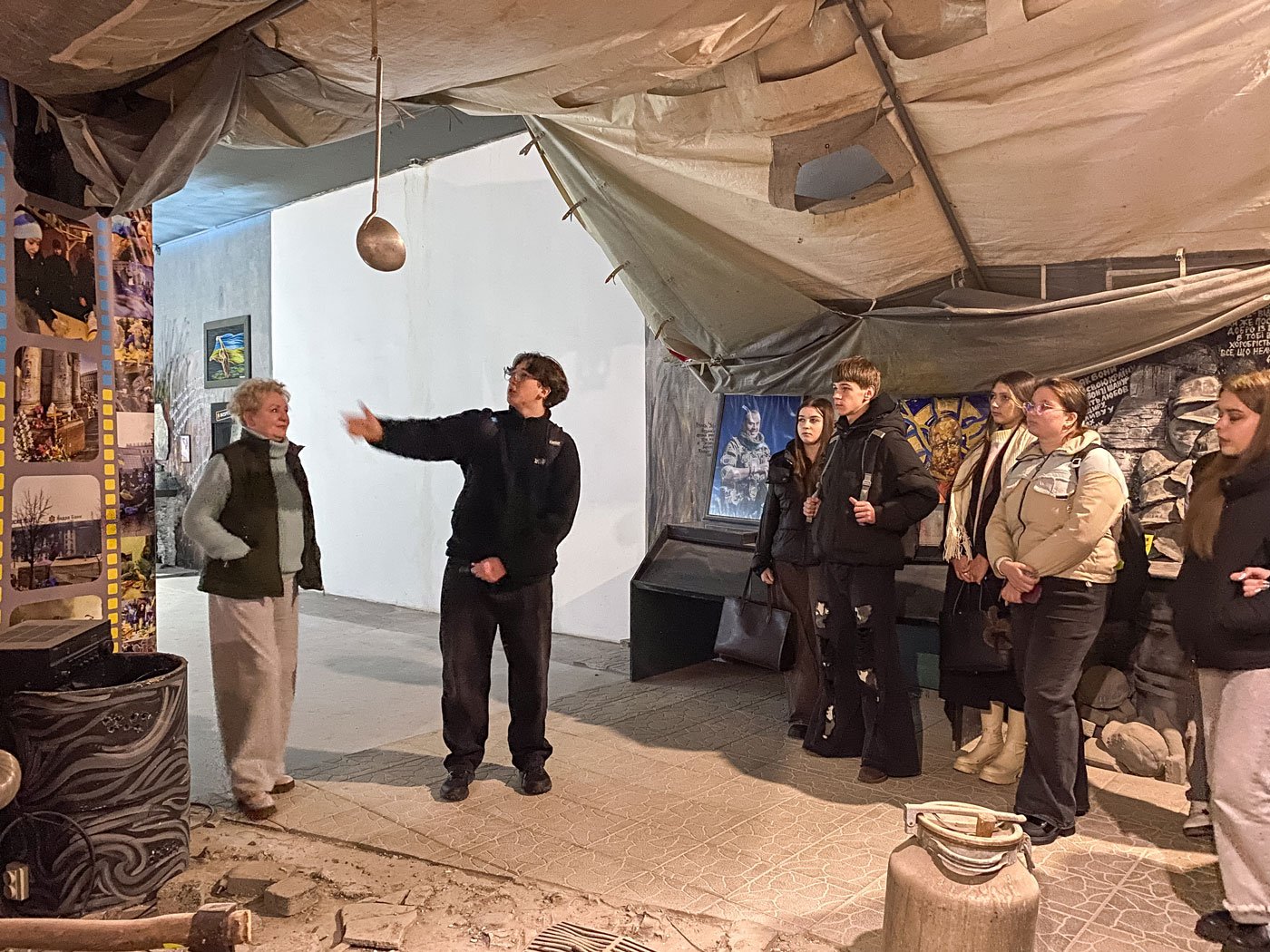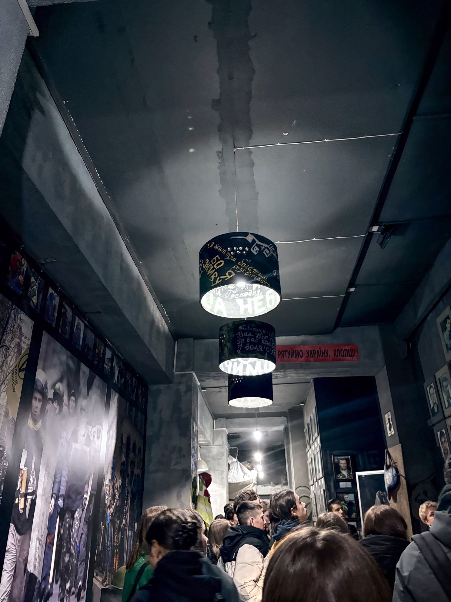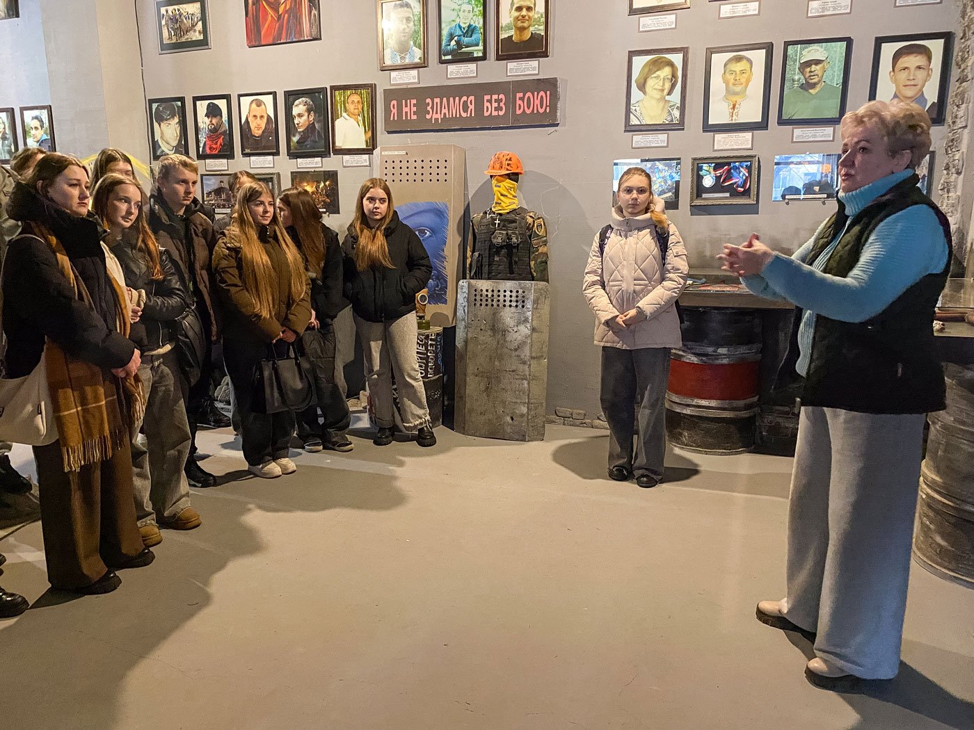 Під час екскурсії студенти ознайомилися з експозиціями, що розповідають про перебіг подій революції 2013 – 2014 років, боротьбу українців за свободу, гідність і європейський вибір. Серед експонатів музею лише оригінальні речі з Майдану. Це і саморобна зброя, і прострілені щити, і намети, і особисті речі загиблих.