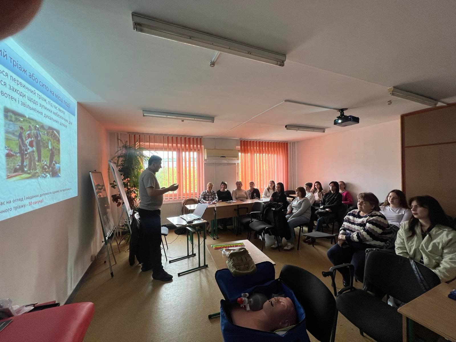 Учасники тренінгу відпрацювали практичні навички: проведення первинного огляду за алгоритмом MARCH та медичного сортування потерпілих; зупинка критичних кровотеч, проведення серцево-легеневої реанімації (у т.ч із застосуванням АЗД), надання невідкладної медичної допомоги при пошкодженні грудної клітки, відновленні прохідності верхніх дихальних шляхів при удавленні (прийом Геймліха).