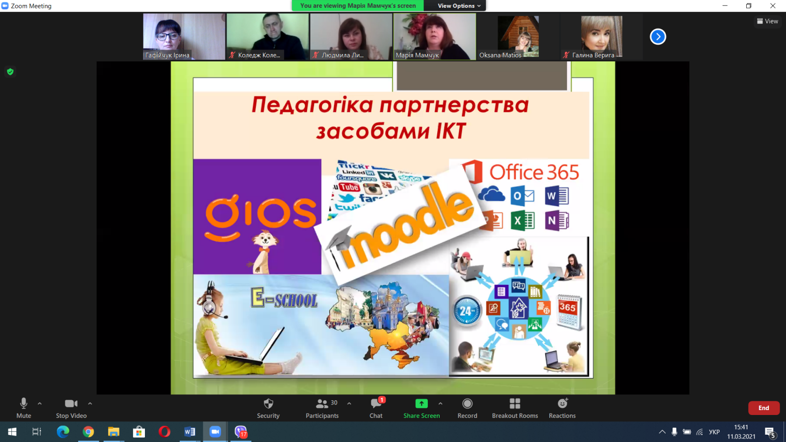 Тема, над якою працює Івано-Франківський фаховий коледж ПНУ, якраз стосується підготовки майбутнього фахівця до інноваційної освітньої діяльності. Людмила Миколаївна Ликтей поінформувала про різні цифрові ресурси, програми, інструменти, які використовуються для дистанційного навчання, акцентувала на підвищенні кваліфікації педагогів, медіакомпетентності, міжнародній діяльності. А розповідь про навчальну і виховну роботу у коледжі у звичному режимі, а не онлайн доповнила добірка світлин про тренінги, ділові ігри, конкурси, тематичні заходи тощо.