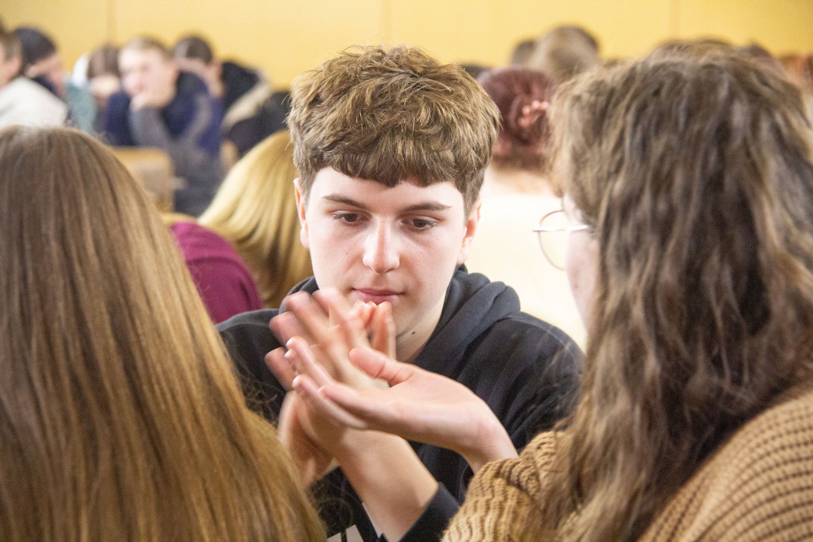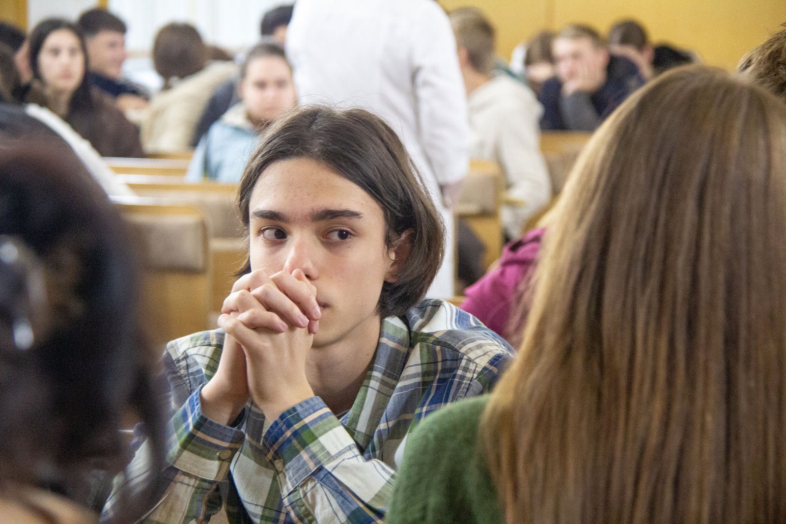 Кмітливість, логіку, роботу в команді продемонстрували здобувачі освіти першого курсу ОПП Лікувальна справа і Сестринська справа, які зібралися в актовій залі. Кожна група подала на гру команду з шести студентів.