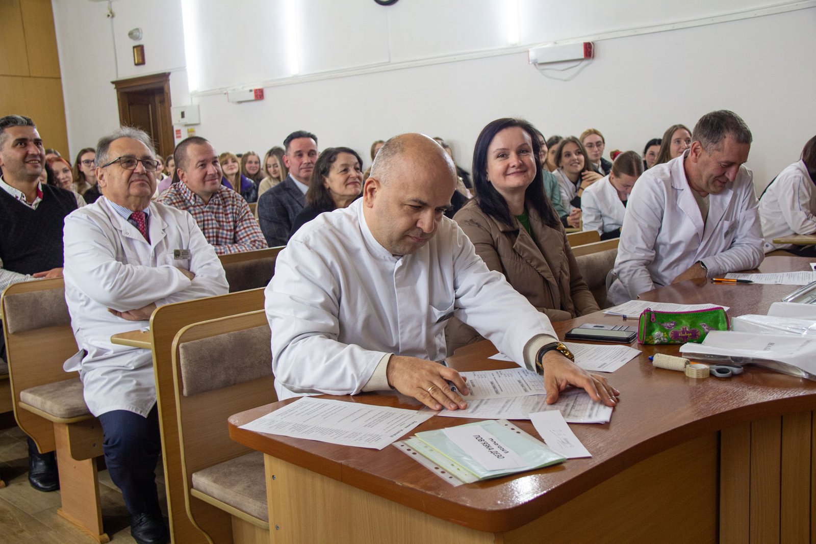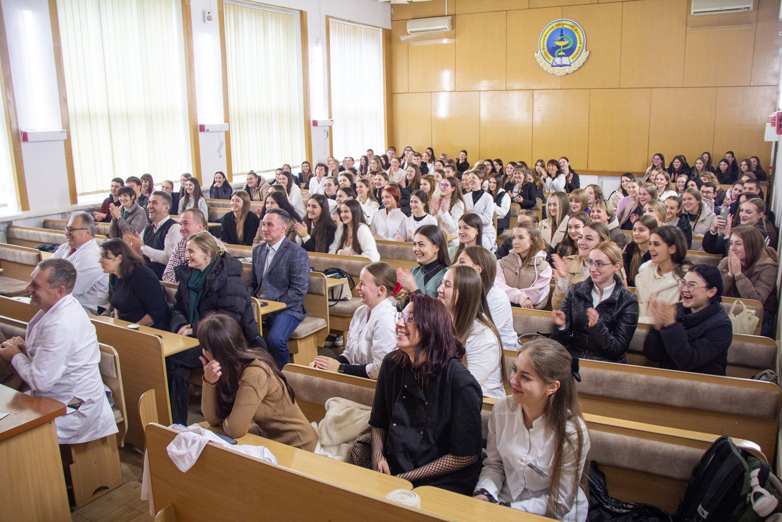 Ведучим конкурсу був викладач хірургії Володимир ЯЦКІВ, який товаришував з Мирославом ДЕБЕНКОМ. А почесними гостями – мама Мирослава Дебенка, викладачка ІФМФК Ольга ДЕБЕНКО і його дівчина Вікторія Білицька – лейтенант медичної служби, лікарка-анестезіолог стабілізаційного пункту 81-ї окремої аеромобільної Слобожанської бригади.