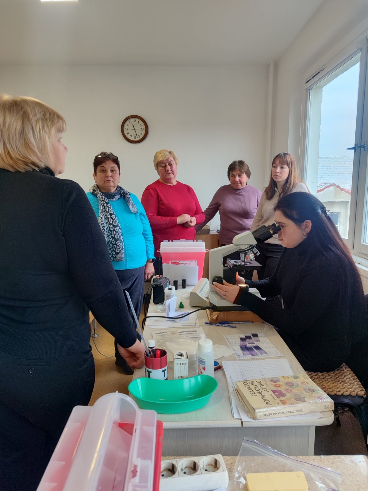 Курсанти ознайомились з правилами техніки безпеки в клініко-діагностичній лабораторії (викладач Плахотна О.М.), удосконалили свої професійні навички з проведення гематологічних та імунологічних досліджень, вчились проводити лабораторні дослідження за допомогою швидких тестів (викладачі Андрішак Л.В., Іванюк У.І.).