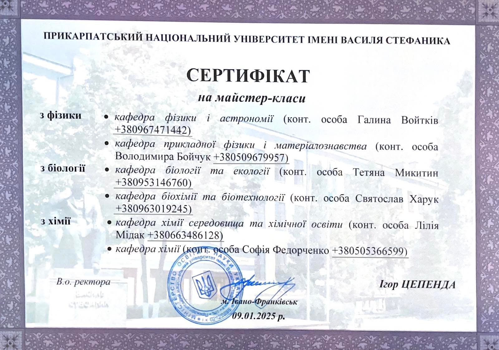 Особливу подяку висловлюємо викладачу хімії Уляні Думанській, яка своїм наставництвом допомогла Мар’яні досягти такого блискучого результату. Її професіоналізм і підтримка стали міцною опорою для студентки.