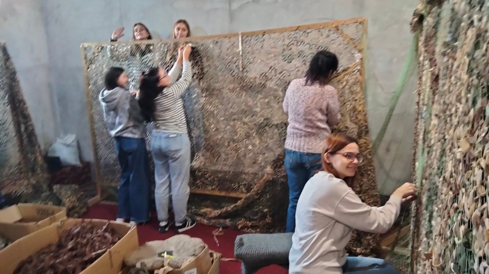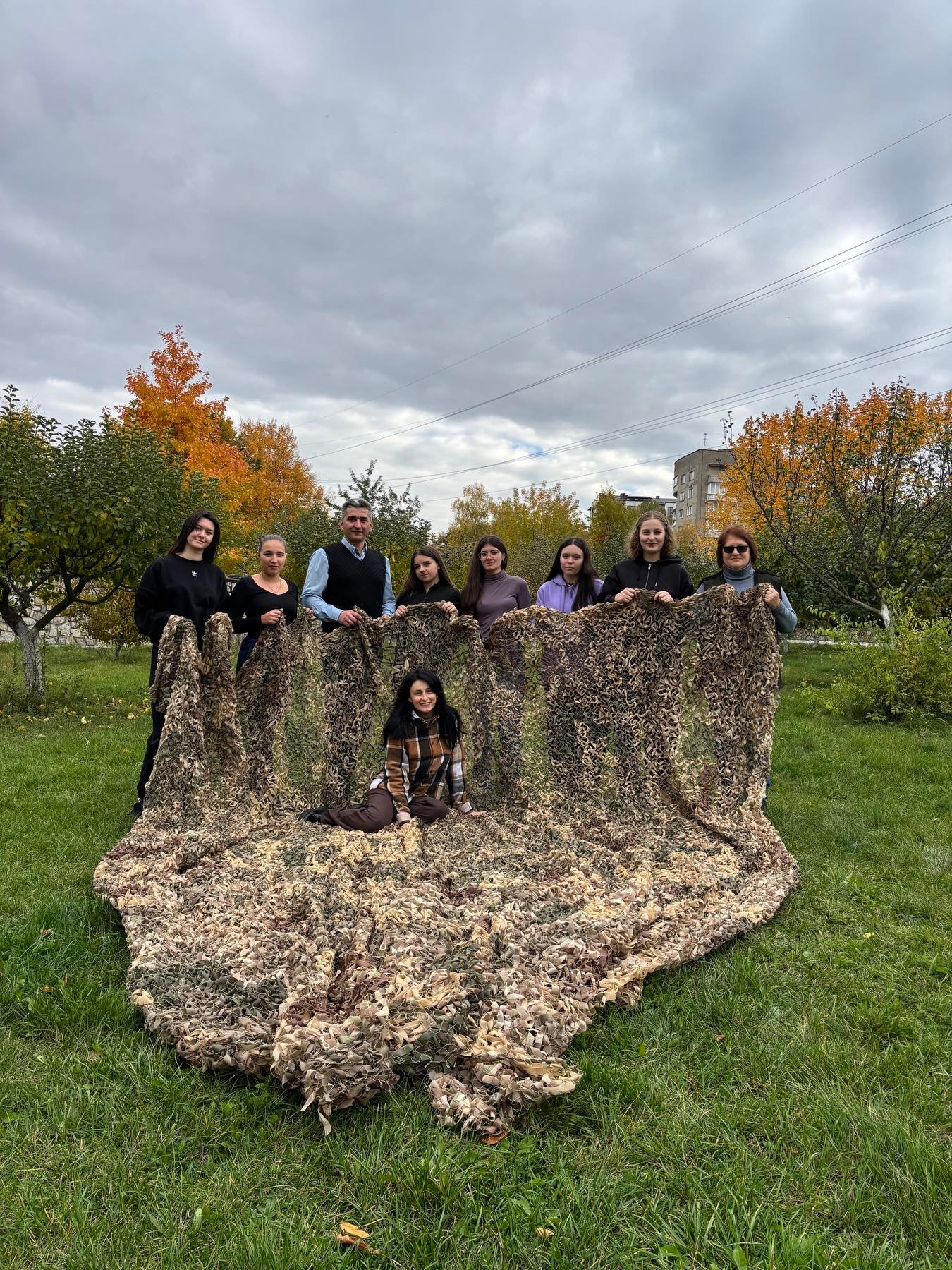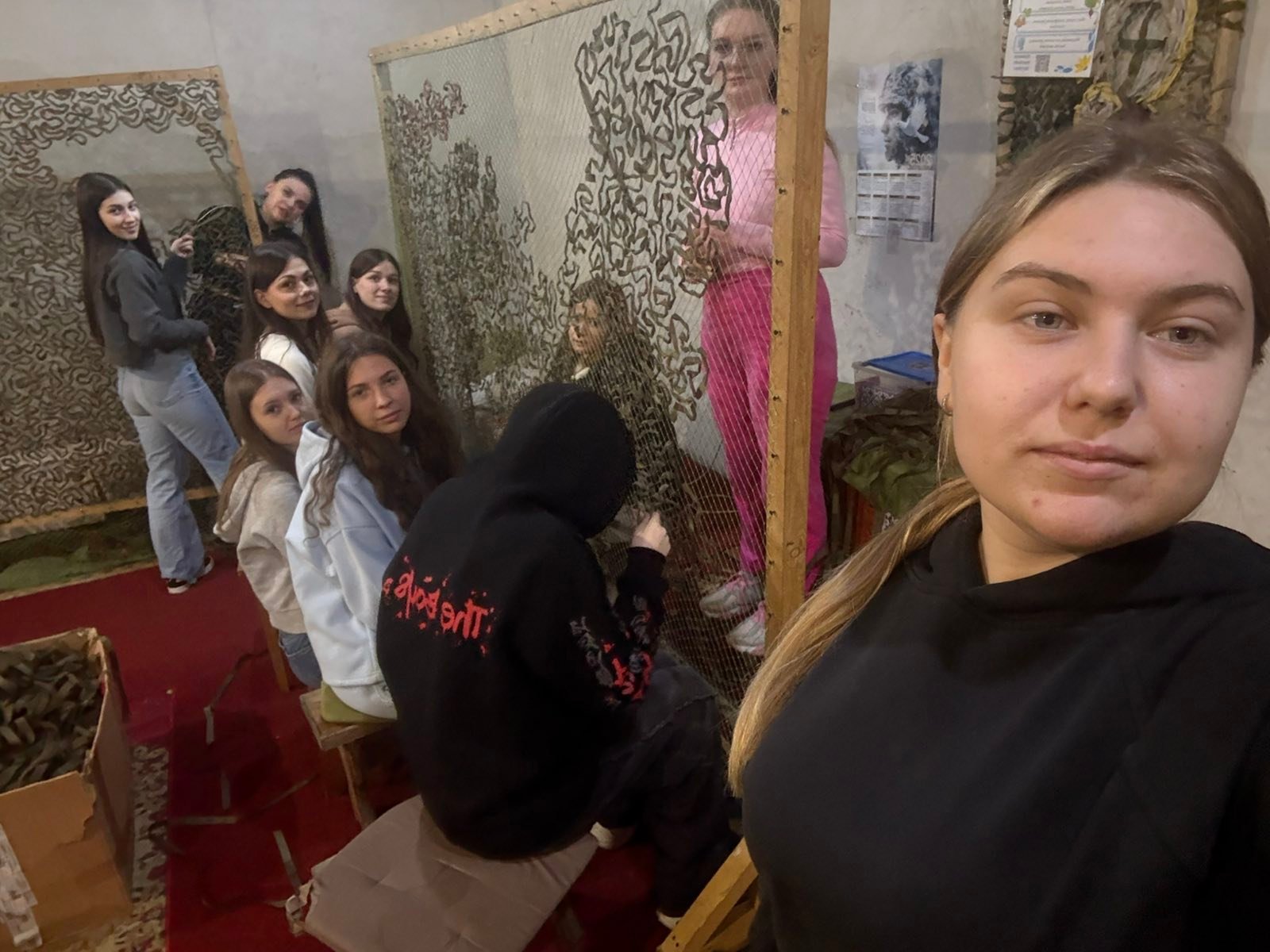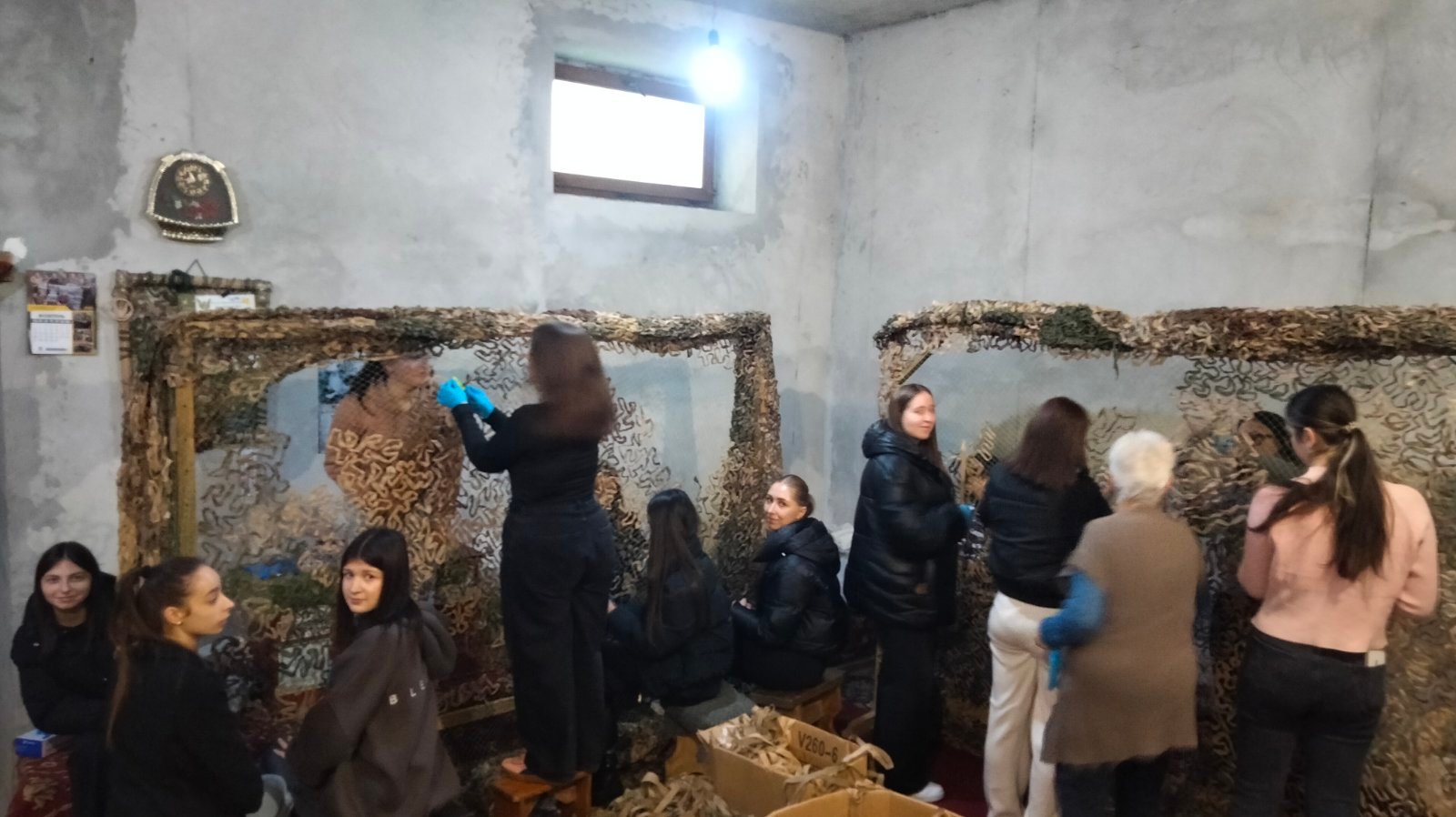 Студенти груп ОПП Лікувальна справа і Сестринська справа випускного курсу під керівництвом голови циклової комісії військово-медичної підготовки, захисту України та фізичного виховання Петра ГОДОВАНЦЯ протягом двох тижнів приходять у парафіяльно-гарнізонний храм Різдва Христового ПЦУ, який знаходиться неподалік коледжу і де настоятелем є колишній випускник Івано-Франківського медичного училища Михайло КУДЛА, щоб плести маскувальні сітки для наших захисників.