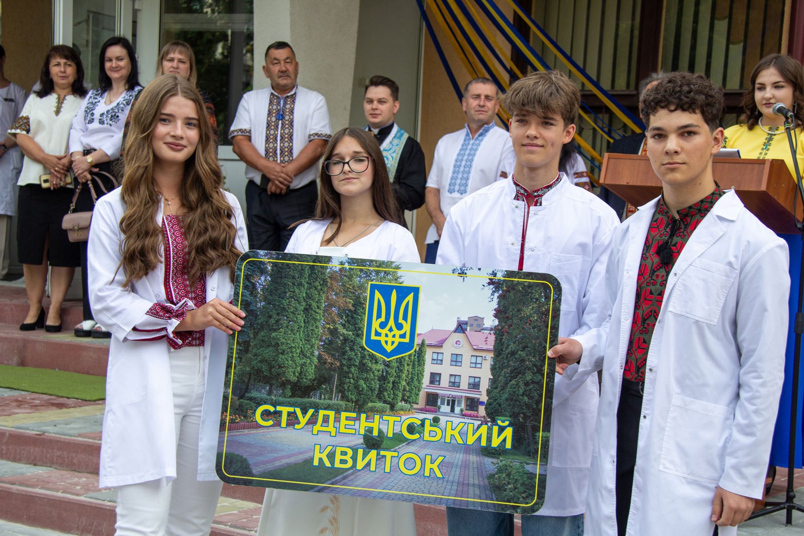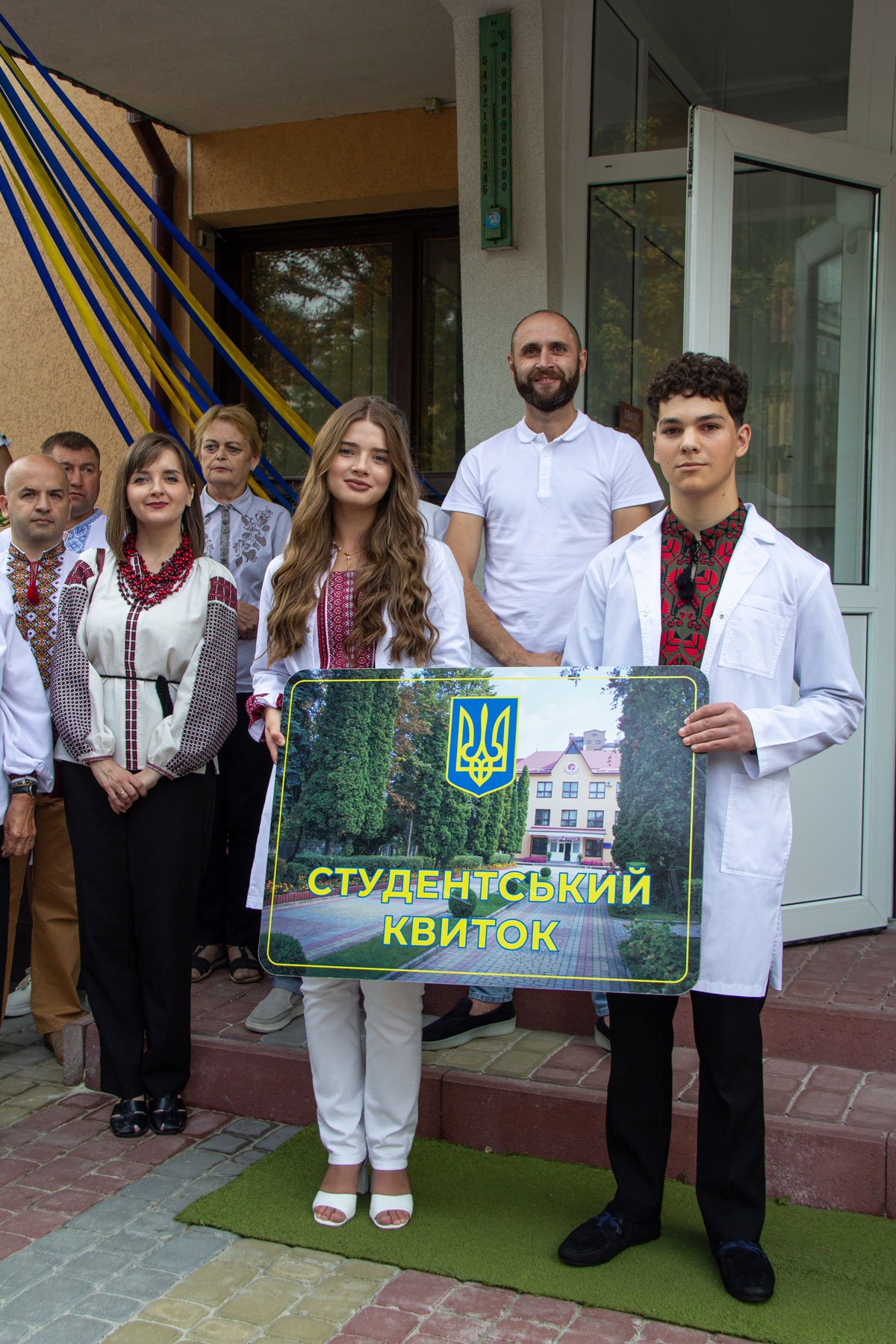 Особливі миті урочистостей – благословення свяченою водою, підхід кураторів до своїх груп з солодощами на вишитих рушниках, передача першокурсникам символічного студентського квитка.