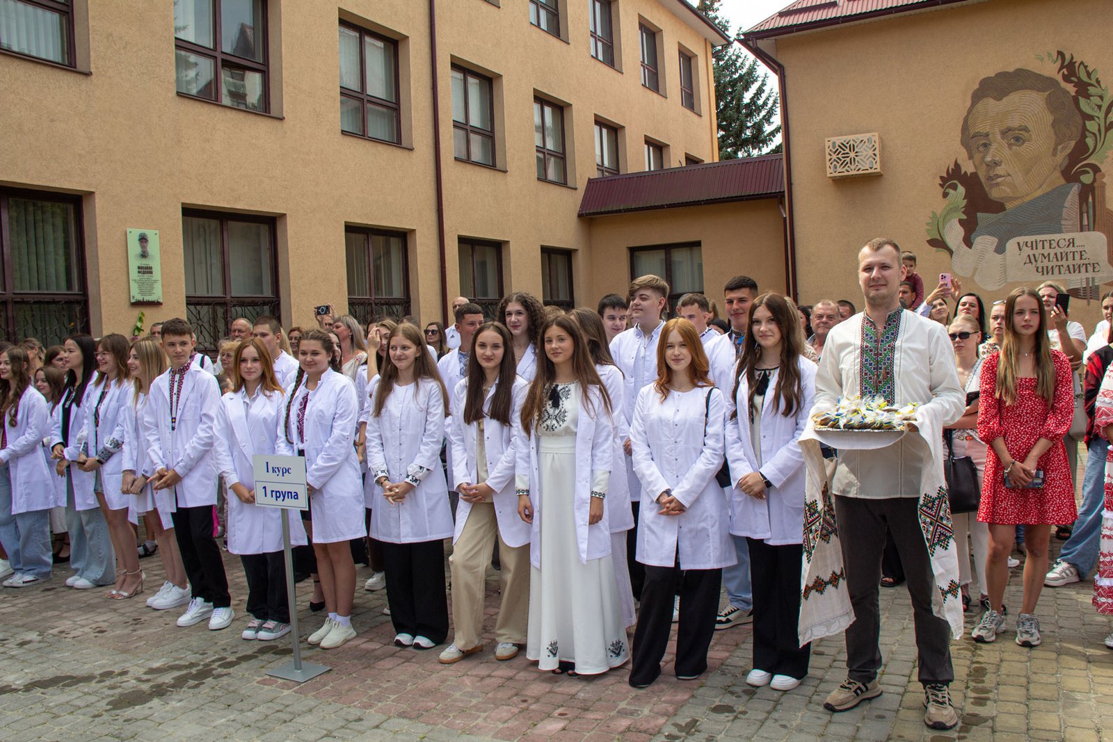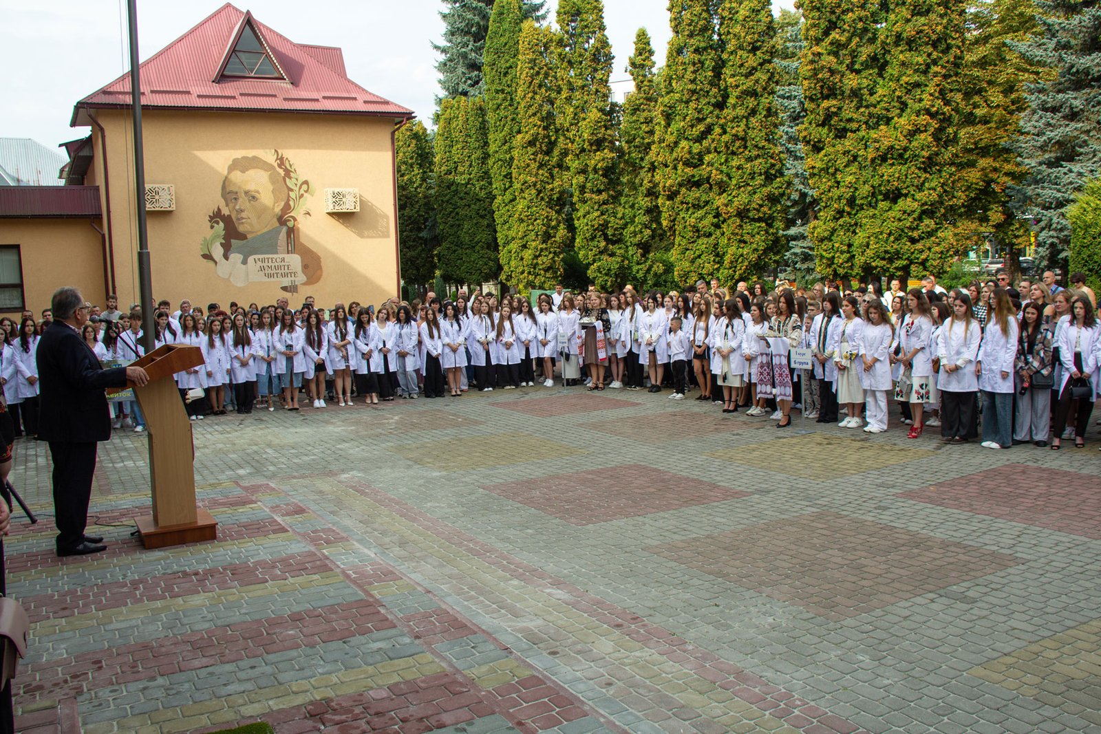 Зі словами вітань до усіх звернувся директор ІФМФК, колишній його випускник Володимир Стасюк. Для тих, хто поповнив родину найстаршого на Прикарпатті медичного освітнього закладу з 85-річною історією і сьогодні одного з найавторитетніших серед аналогічних закладів фахової передвищої освіти, він наголосив, що «медицина є найпрекраснішим з мистецтв», нагадав, що «студент» у перекладі з латинської мови – «той, хто ретельно працює», і побажав «радісної праці та здобутків в оволодінні фахом».