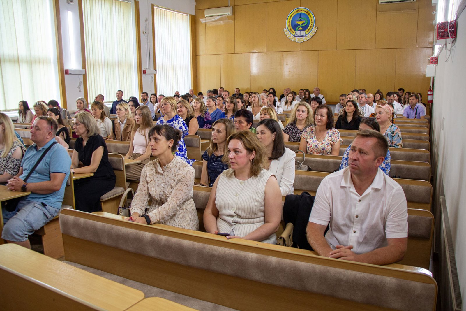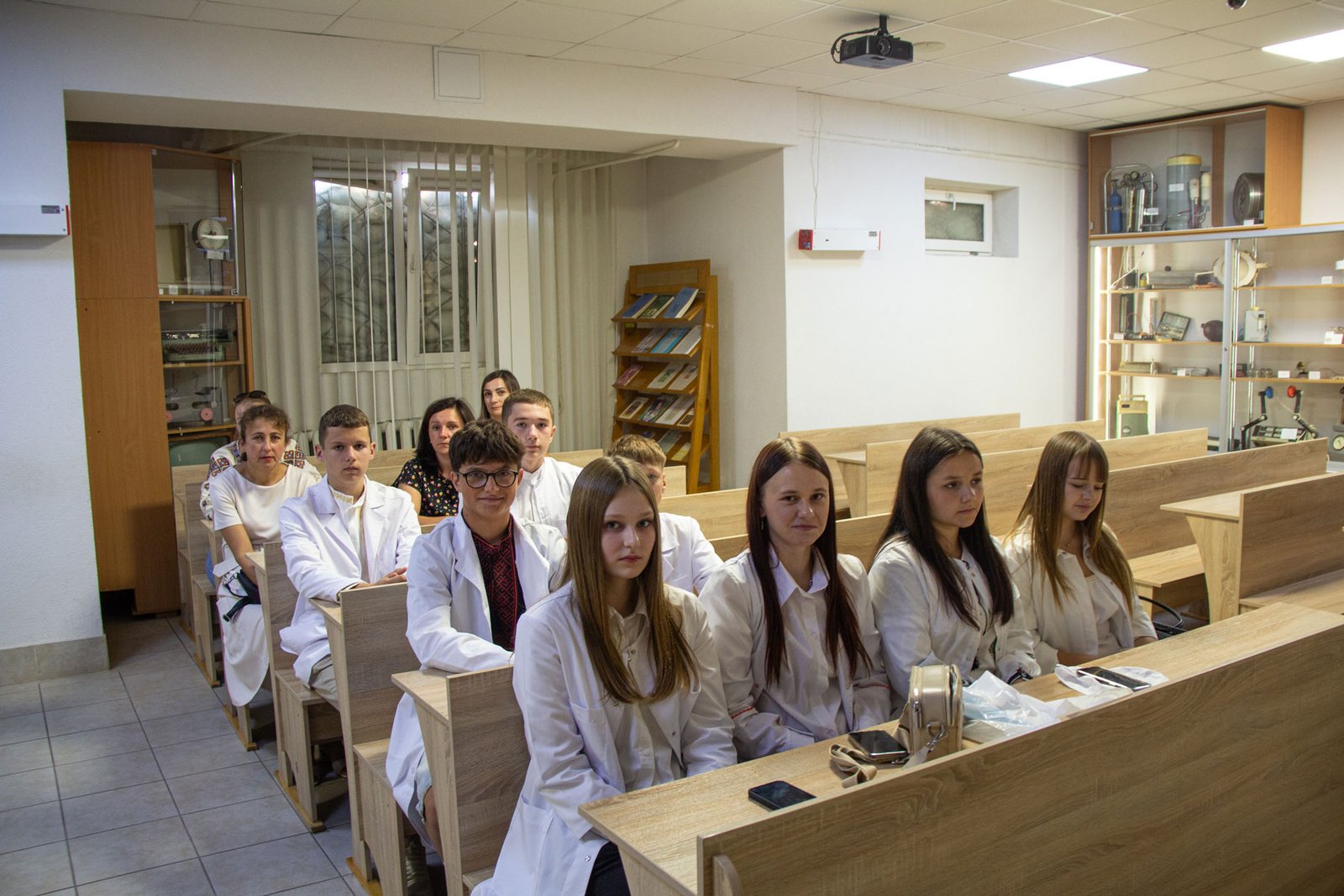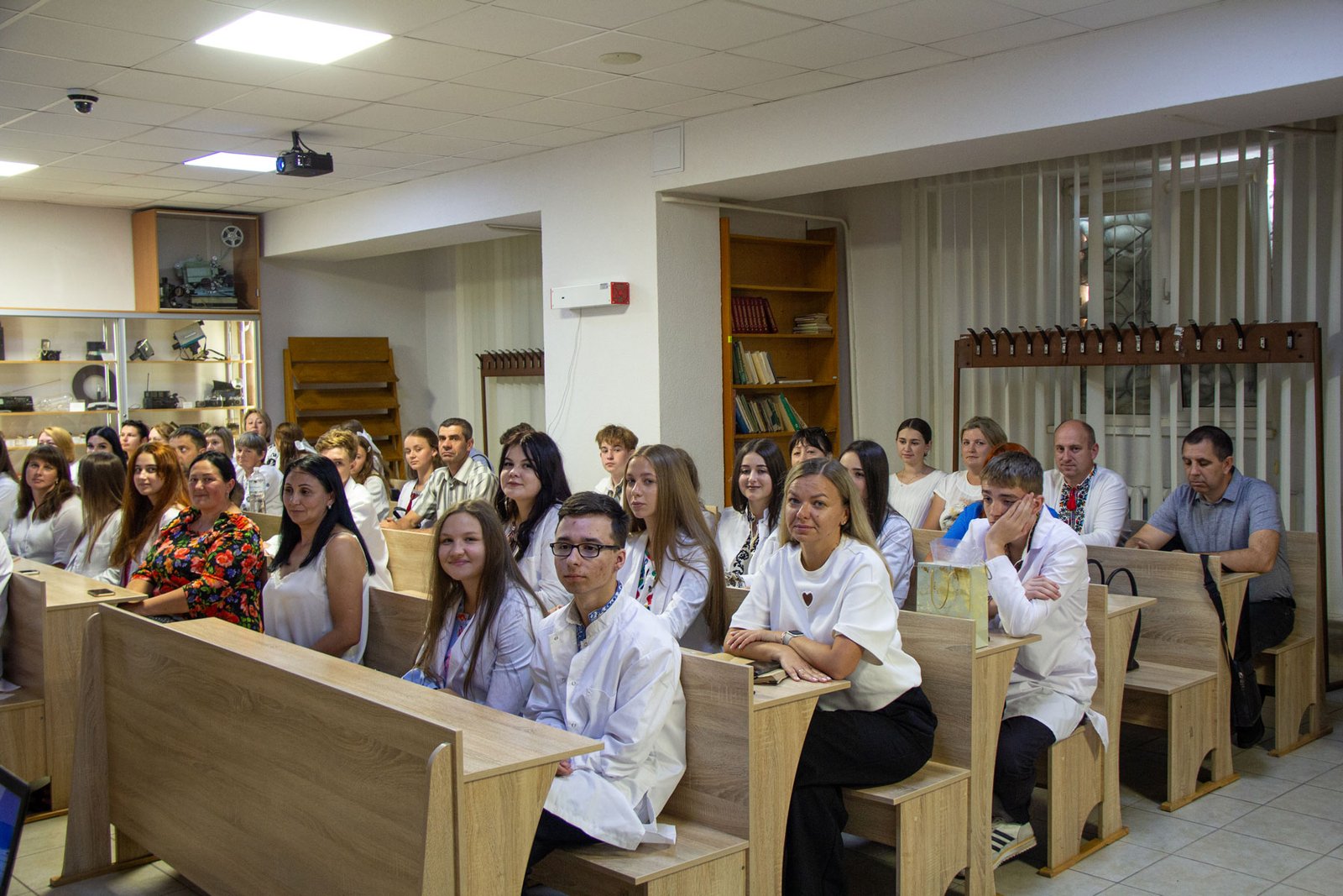 Урочисту посвяту вирішили проводити у два етапи – і з міркувань безпеки у воєнний час, і для можливостей прийняти не лише першокурсників, а й їхніх рідних, що прийшли розділити з ними цю щасливу мить. Першими на церемонію посвяти прийшли здобувачі чотирьох груп ОПП Сестринська справа і групи ОПП Акушерська справа, а згодом – чотирьох груп ОПП Лікувальна справа та студенти, зараховані на базі 11 класу.