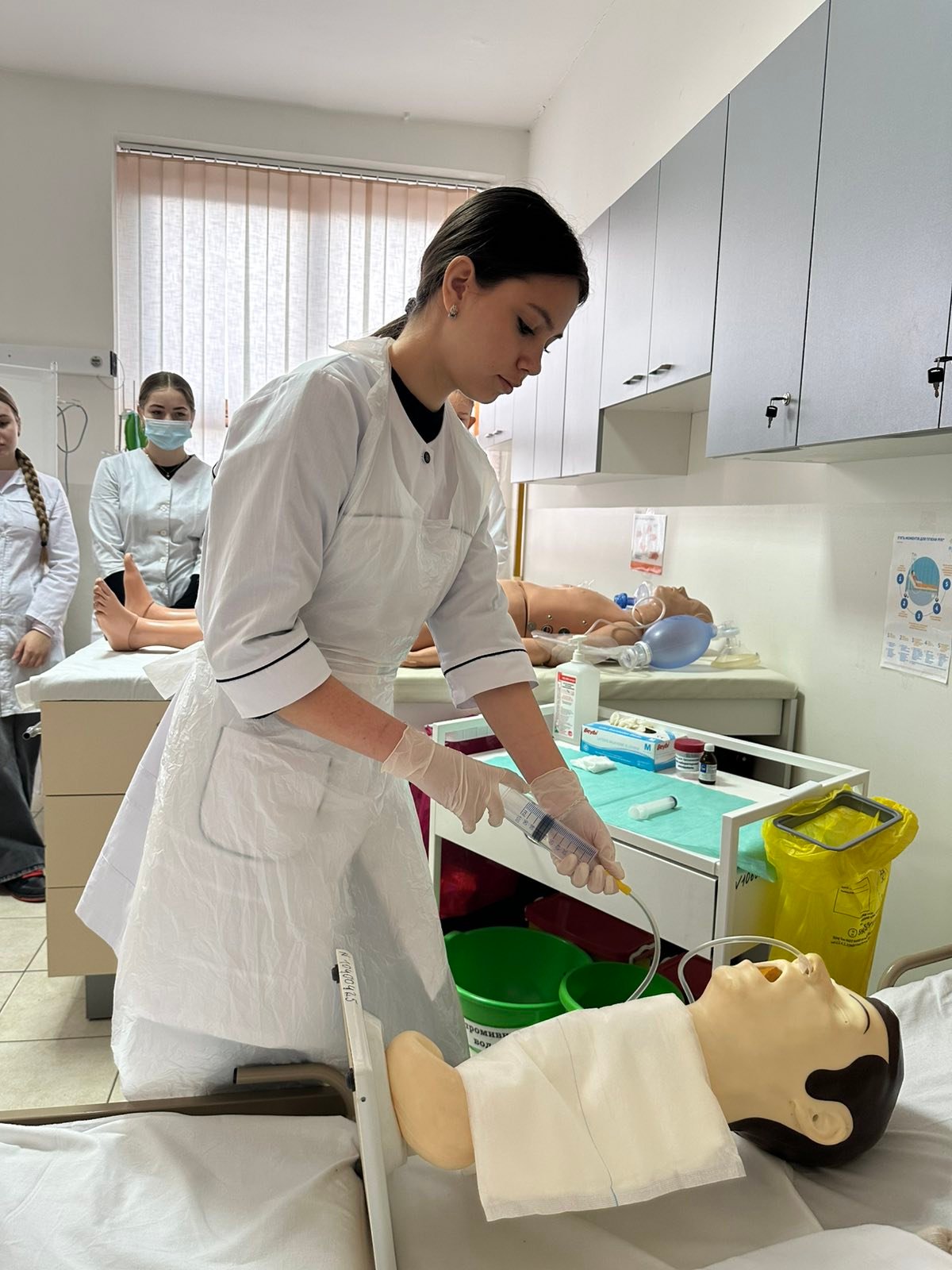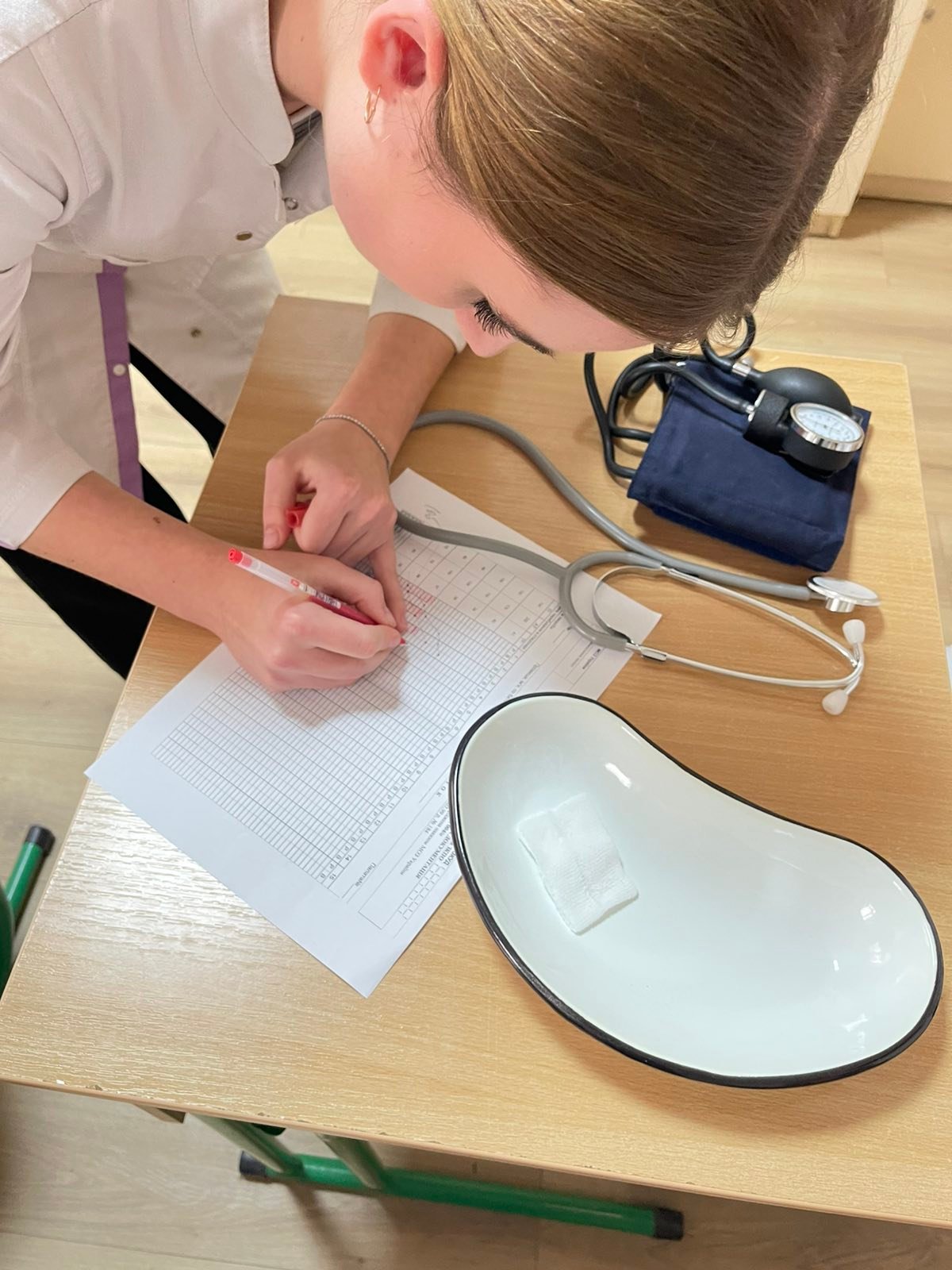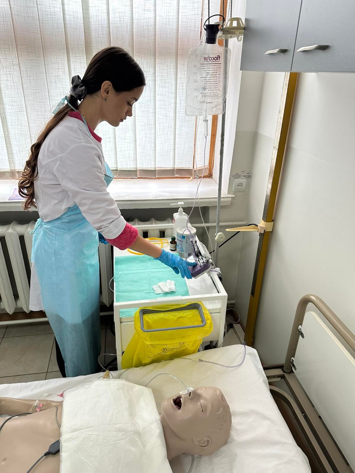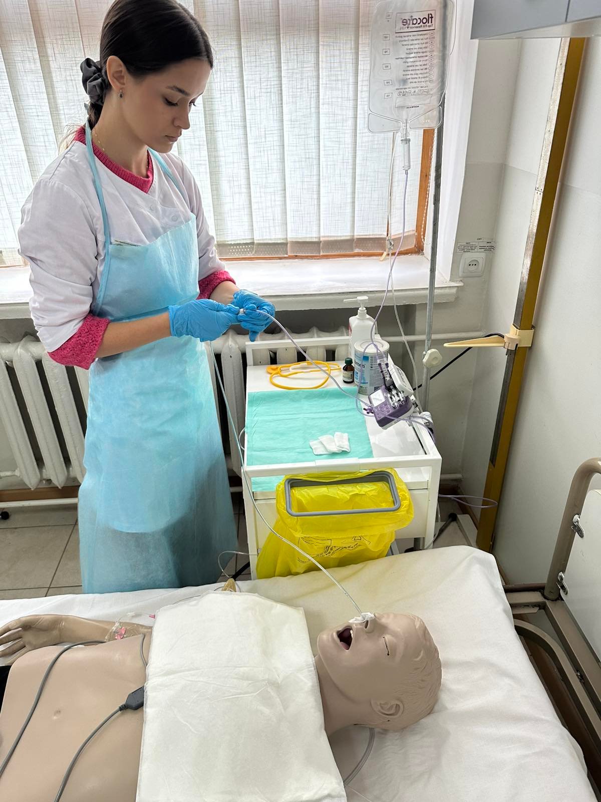 Під час практичних занять з освітнього компонента «Основи медсестринства» здобувачі освіти ІІ курсу активно відпрацьовують практичні навички, які є основою майбутньої професії. Практична підготовка — невід’ємна складова навчального процесу, адже саме вона формує компетентності, які майбутні медичні фахівці будуть застосовувати у реальних клінічних ситуаціях.