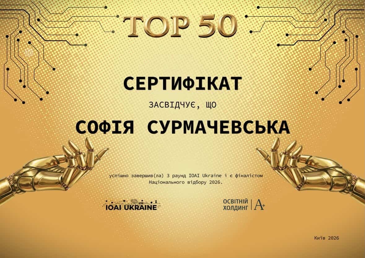 Софія продемонструвала високий рівень знань, аналітичного мислення та наполегливості, успішно пройшовши три етапи відбору. За результатами третього раунду вона увійшла до топ-50 найкращих учасників серед понад 2300 конкурсантів з усієї України.