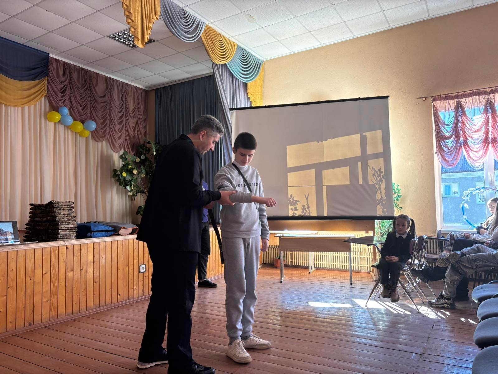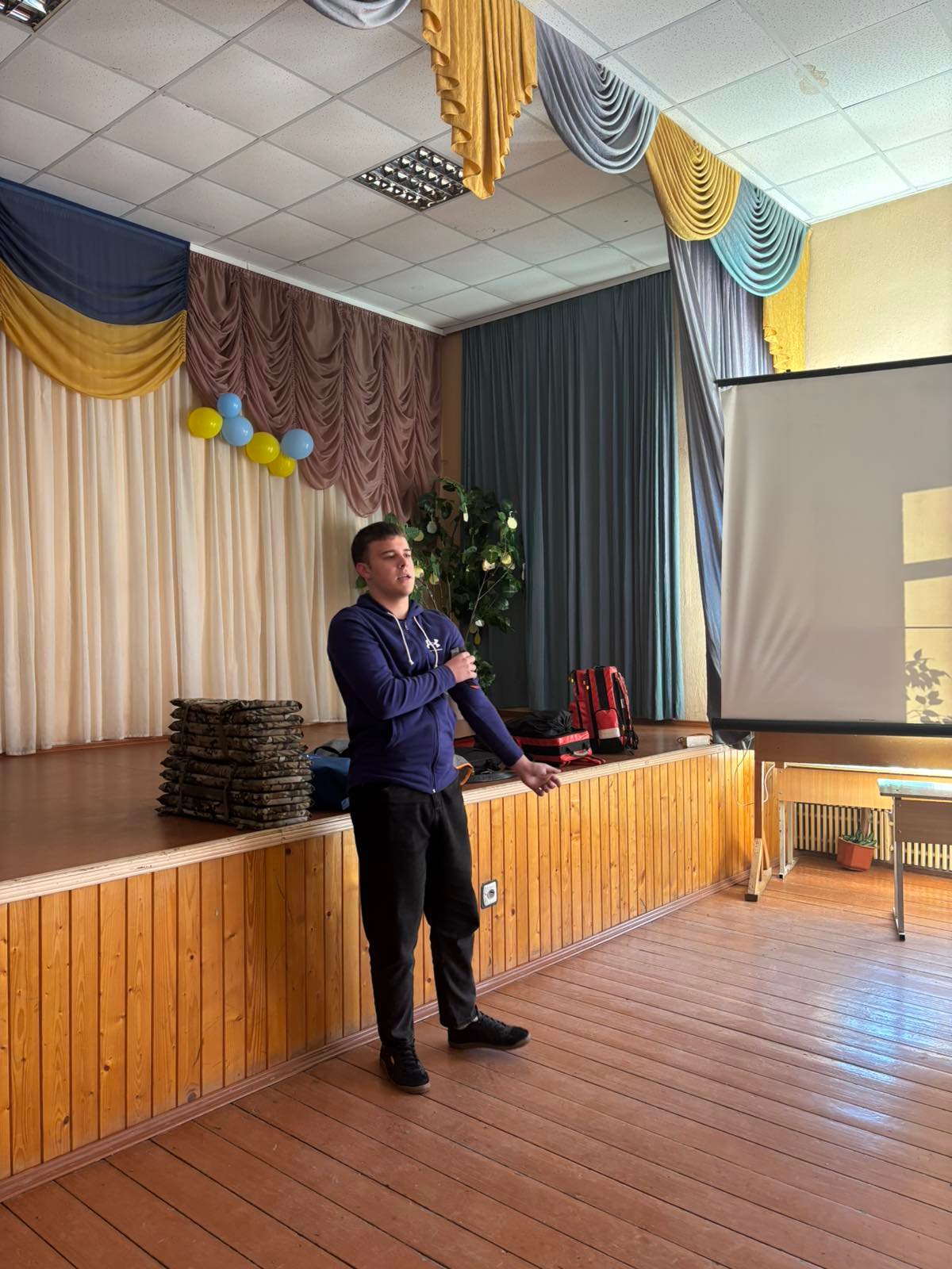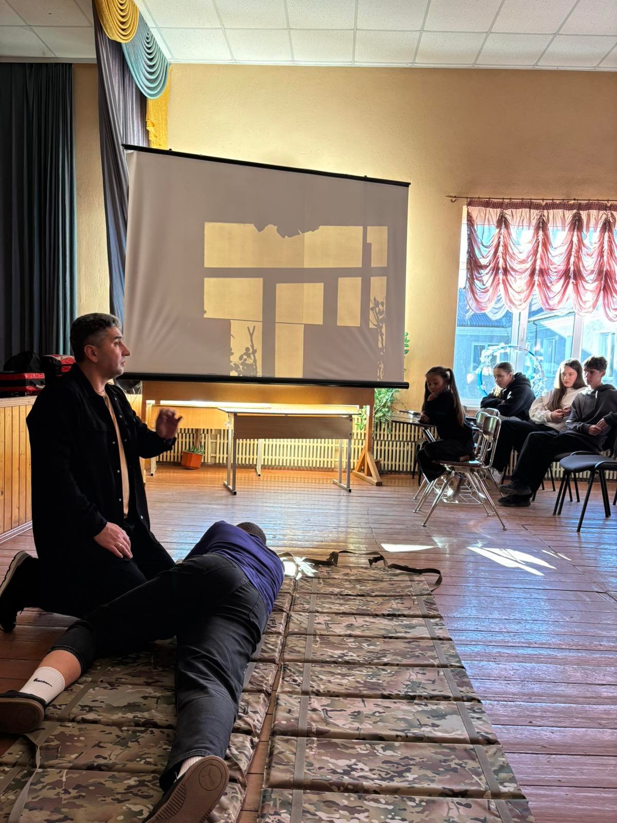 На таке навчання прийшло понад 30 учнів дев’ятих класів, а також представники адміністрації ліцею і вчителі. Тренінг провів викладач хірургічних дисциплін, голова циклової комісії військово-медичної підготовки, захисту України та фізичного виховання Петро ГОДОВАНЕЦЬ. Йому допомагали, демонструючи практичні навики, третьокурсник ОПП Лікувальна справа Денис ПРИШЛЯК, здобувачки освіти IV курсу ОПП Сестринська справа Ірина БОДНАРУК і Анастасія БУБЕНЧИК.