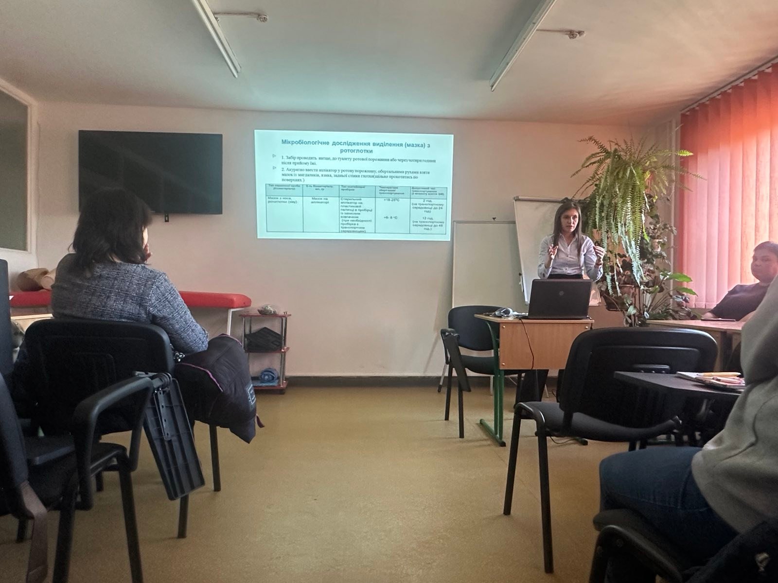 Учасники тренінгу вивчали організацію роботи медичного персоналу для профілактики розвитку у пацієнтів інфекцій, пов’язані з наданням медичної допомоги, катетер-асоційованих інфекцій кровотоку, катетер - асоційованих інфекцій сечовидільної системи; профілактики виникнення і поширення вентилятор-асоційованої пневмонії, інфекції області хірургічного втручання. Особлива увага була приділена питанню забору матеріалу для мікробіологічного дослідження.
