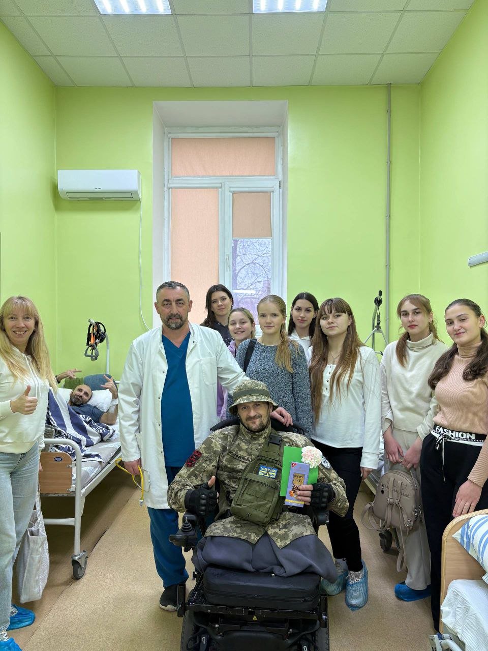Здобувачі освіти ІФМФК побували у відділенні хірургії військового госпіталю, де завідувачем відділення є колишній викладач коледжу Сергій Гафійчук. Для поранених військових важливі не лише солодкі подарунки, а й щирі слова вдячності та спілкування.