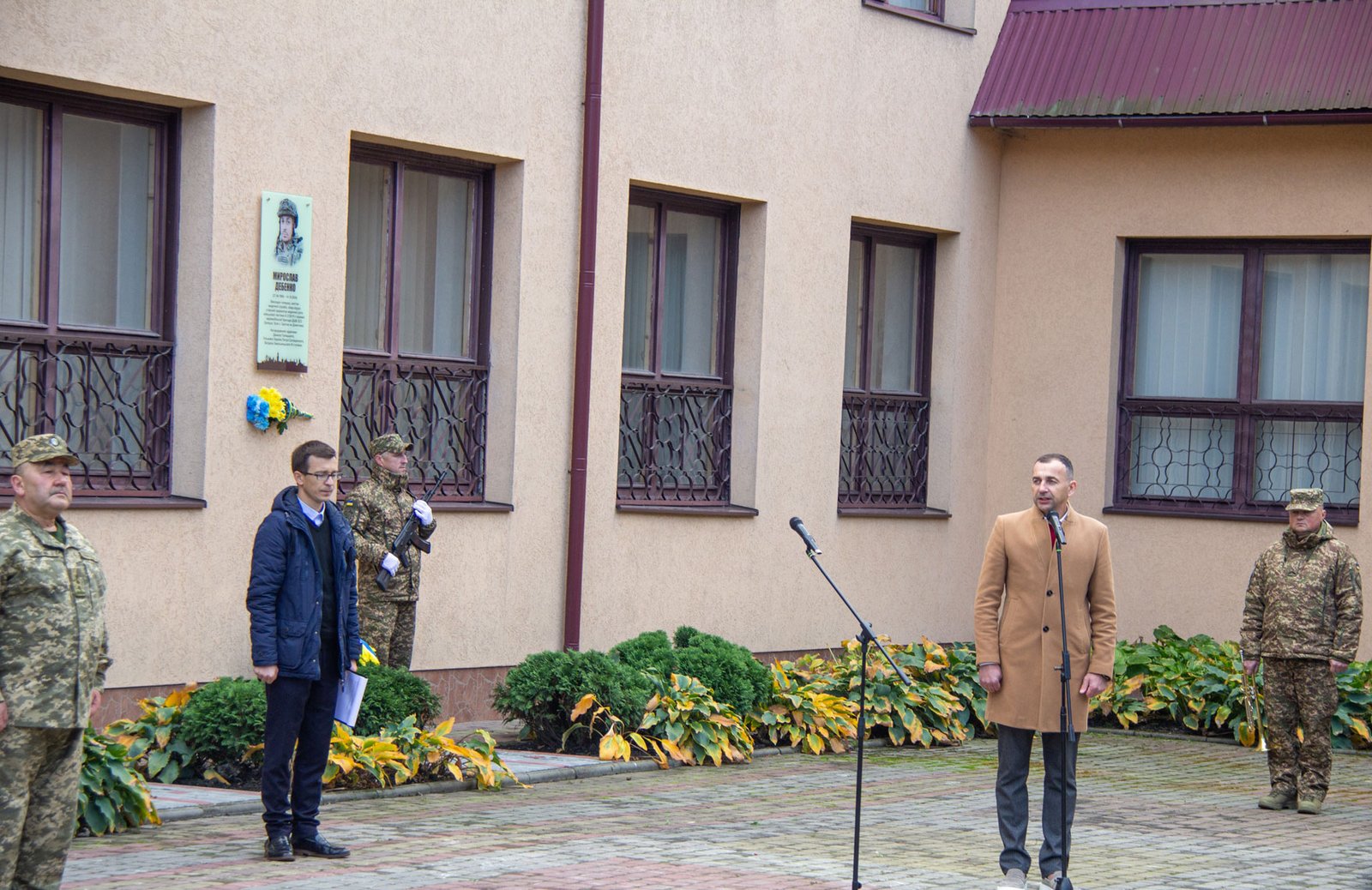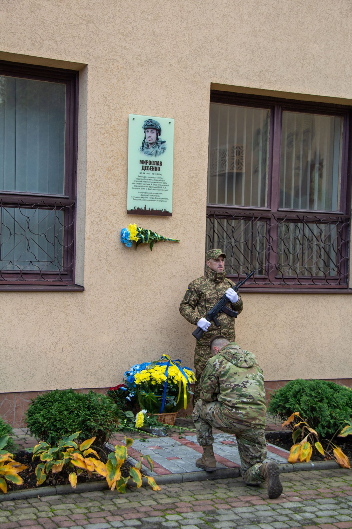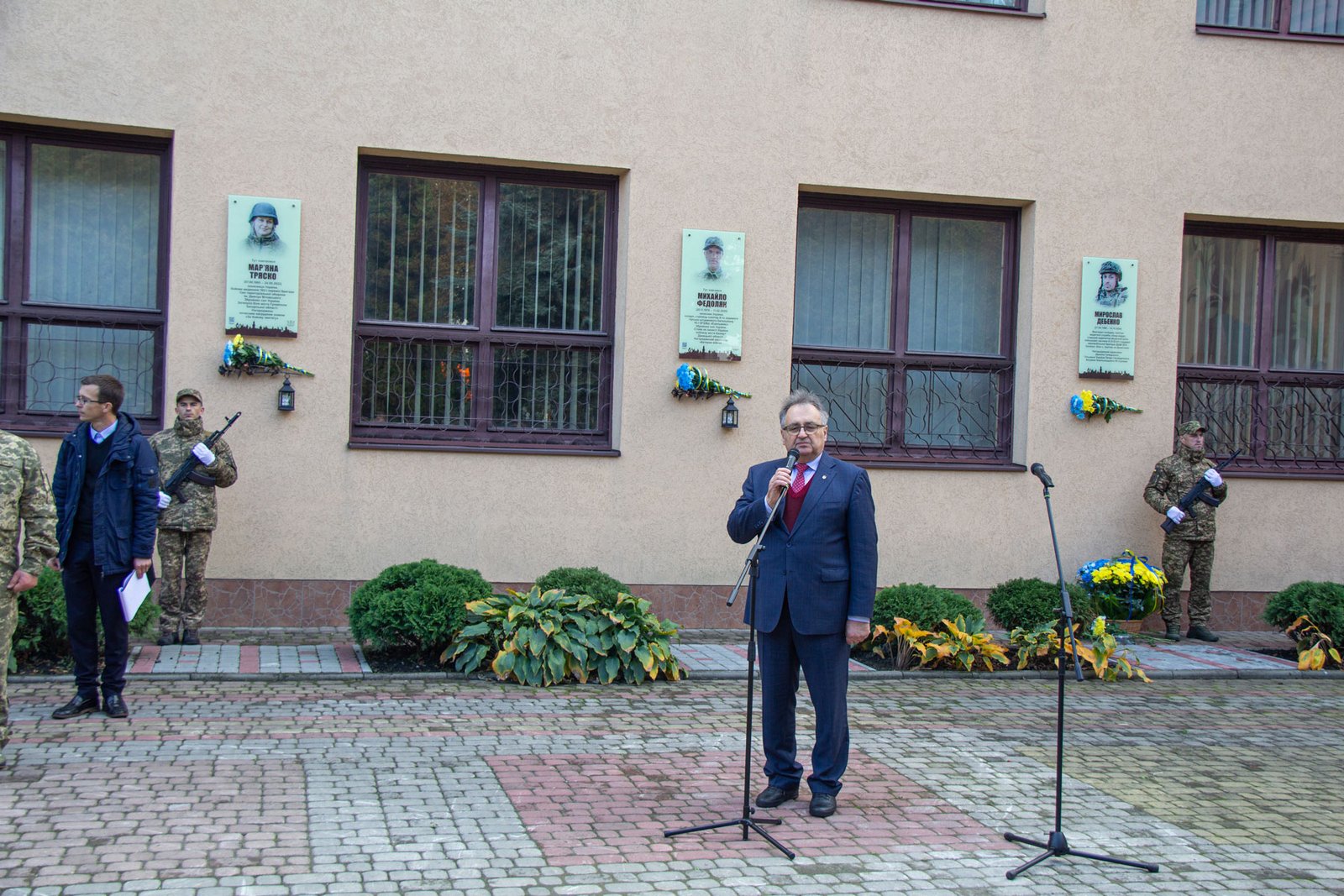 Після хвилини мовчання за Мирославом Дебенком і всіма загиблими в російсько-українській війні покладені квіти до пам’ятних дощок Мирославові Дебенку, Мар’яні Тряско і Михайлові Федоляку.