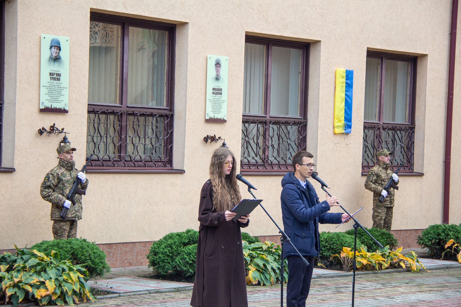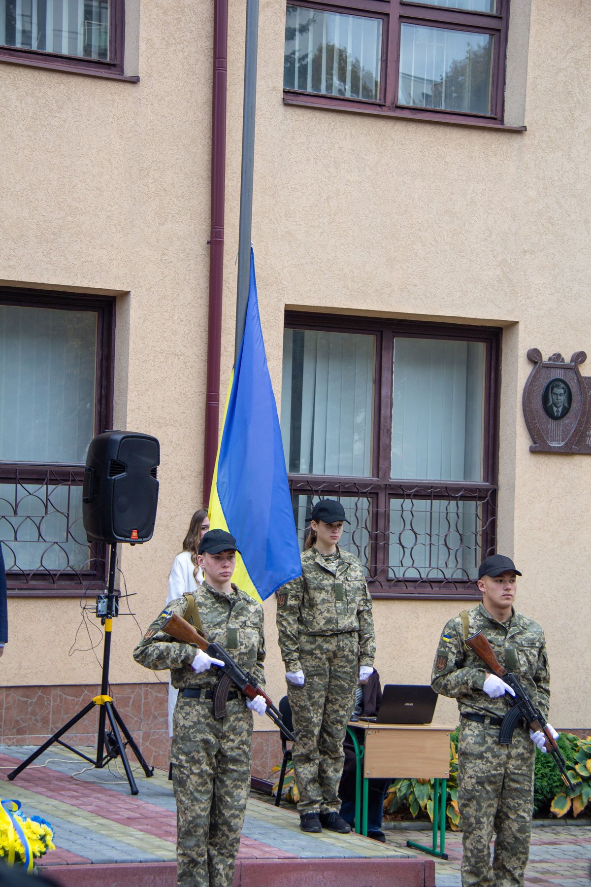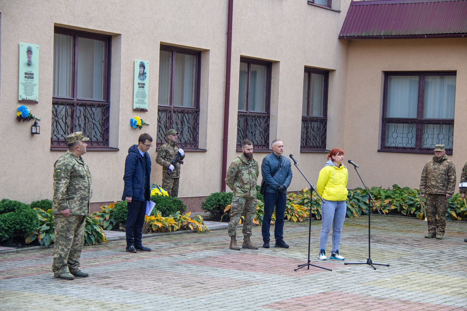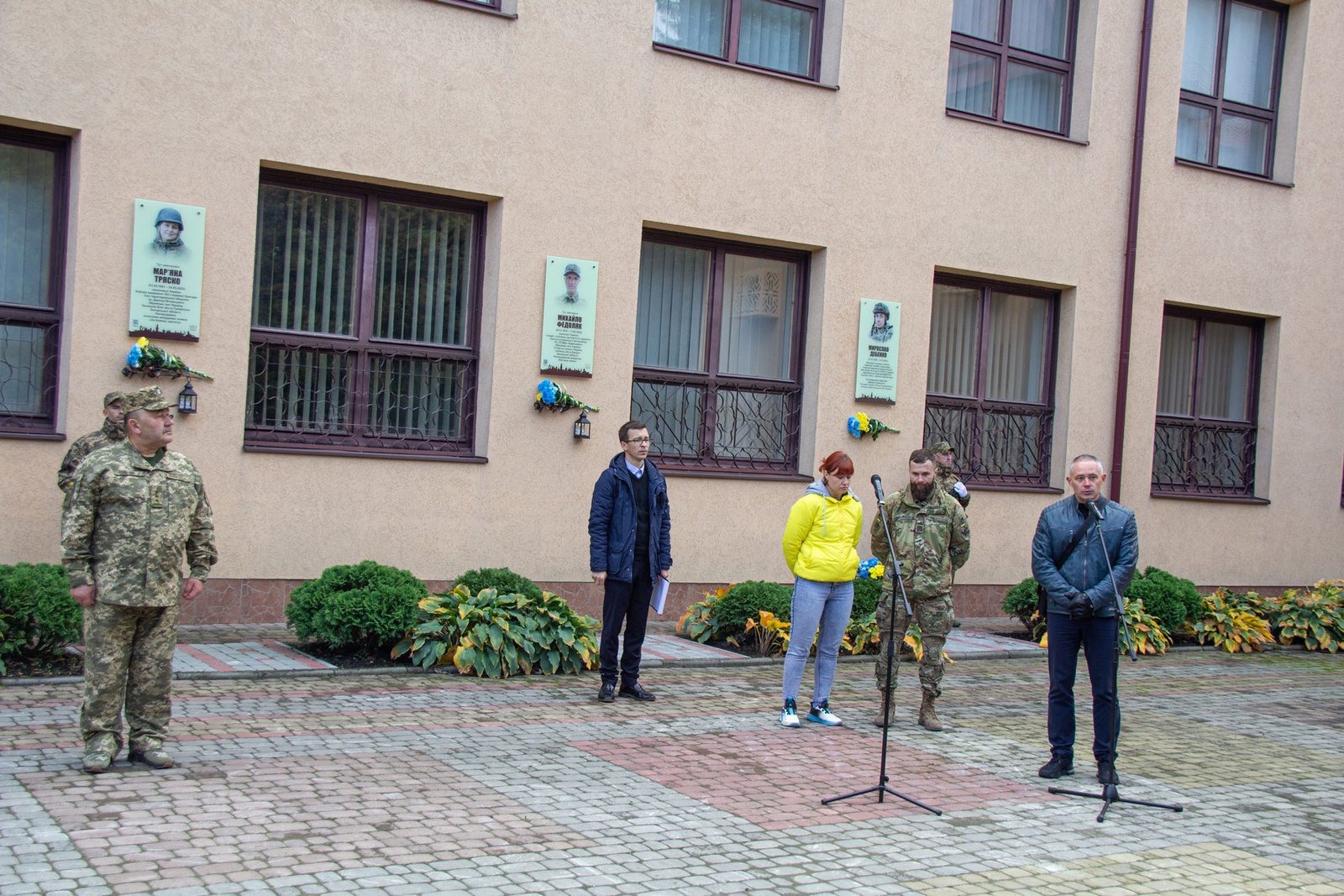 Після хвилини мовчання за Мирославом Дебенком і всіма загиблими в російсько-українській війні покладені квіти до пам’ятних дощок Мирославові Дебенку, Мар’яні Тряско і Михайлові Федоляку.