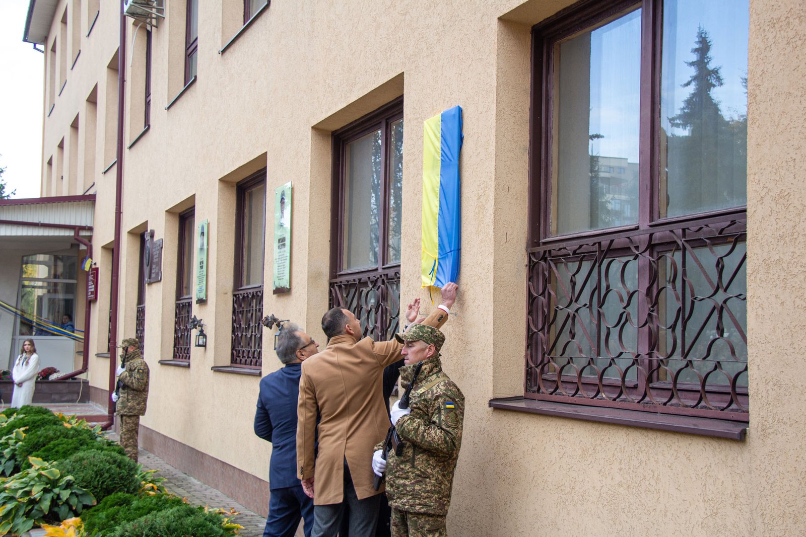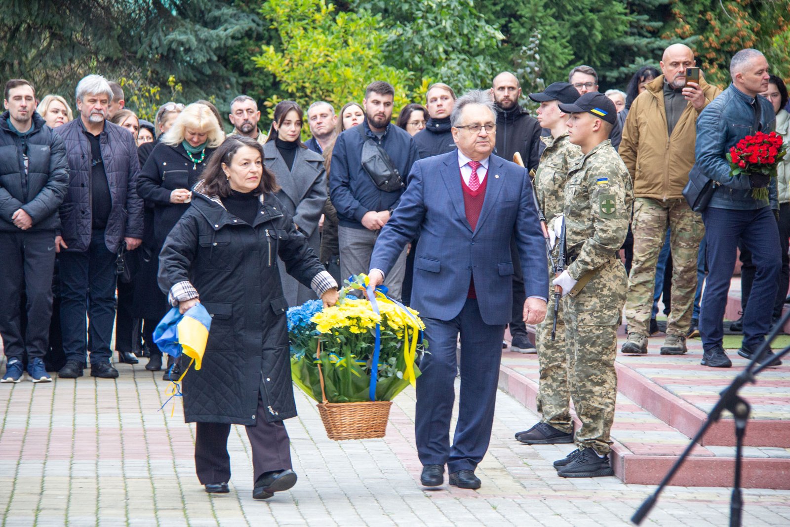 На вшанування пам’яті Героя прийшли його рідні, друзі, представники міської влади, працівники, викладачі і студенти, з фронту приїхали побратими і посестри. На подвір’ї перед коледжем вишикувалися першокурсники у військовій формі. Під звуки Гімну України було піднято синьо-жовтий прапор – так розпочали меморіальні заходи з відкриття пам’ятної дошки загиблому Герою.