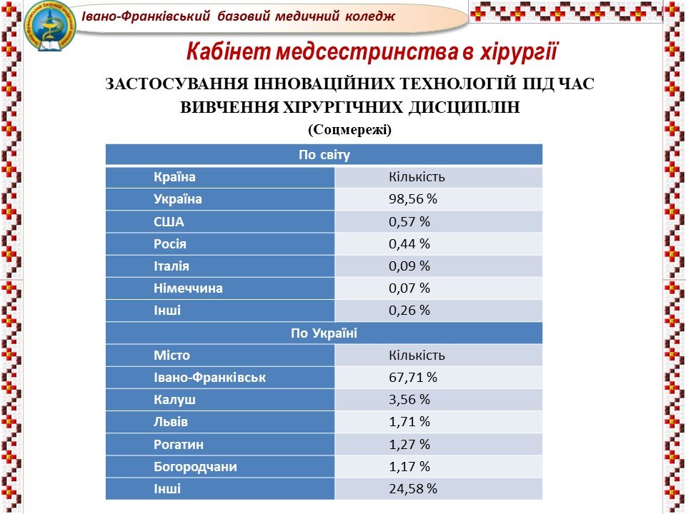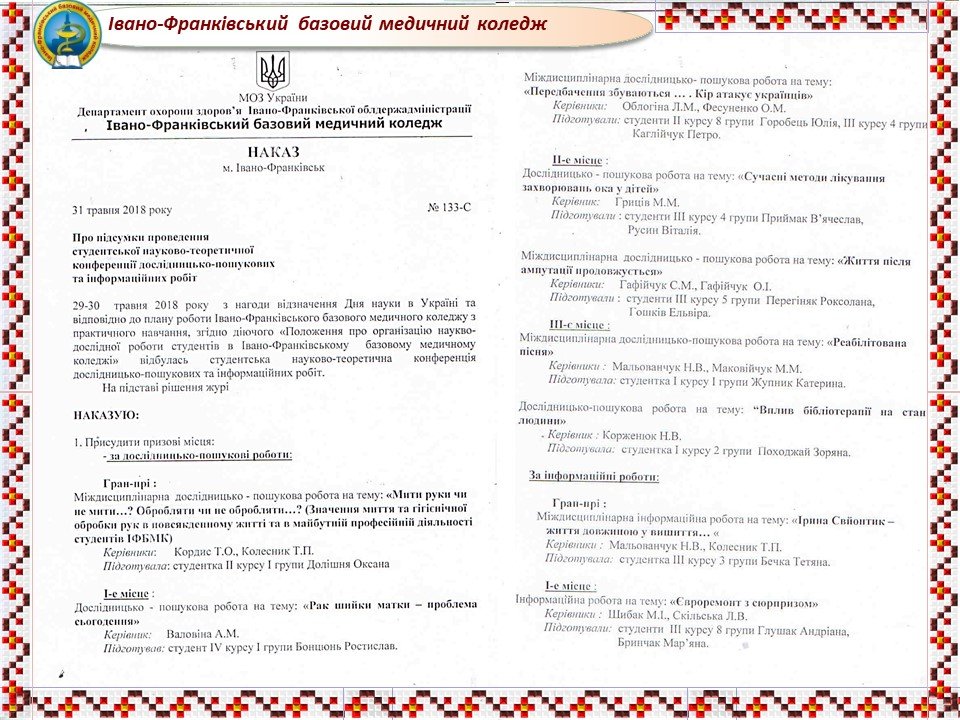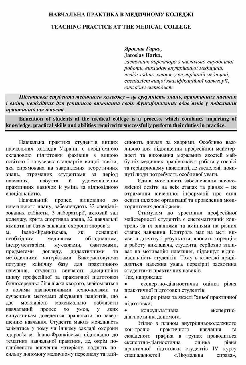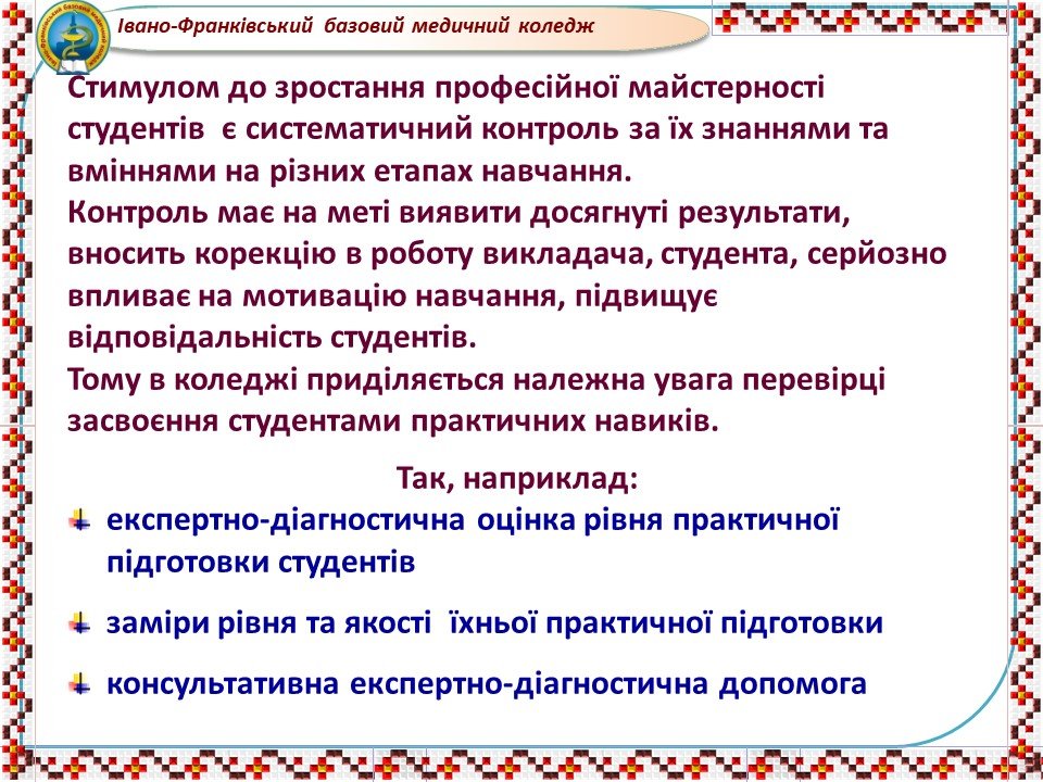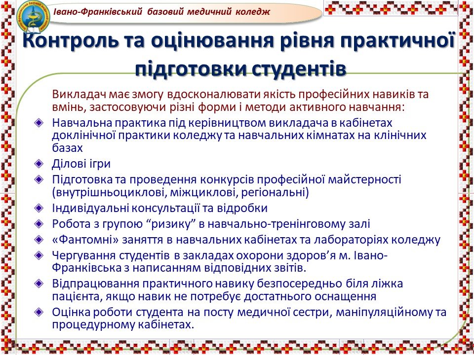 Особливості організації та проведення практичного навчання в Івано-Франківському базовому медичному коледжі