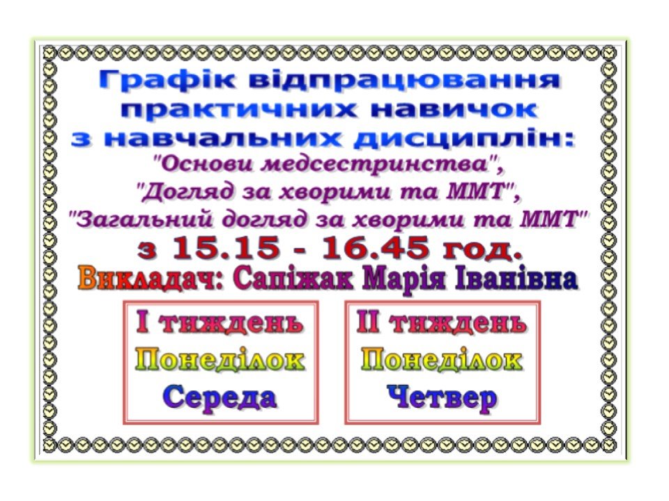 5. Відпрацювання практичних навиків у медичному пункті коледжу