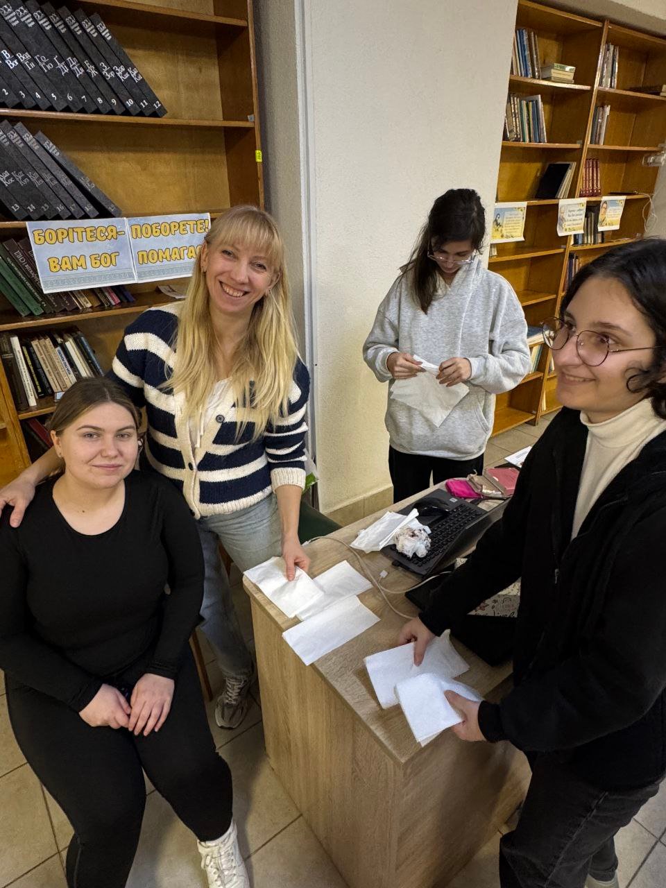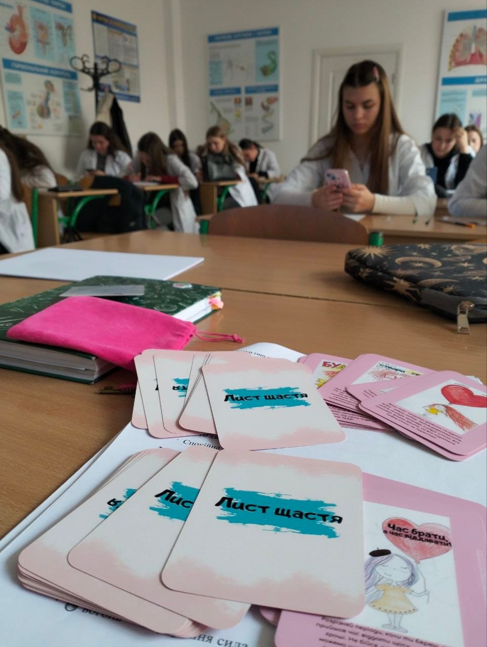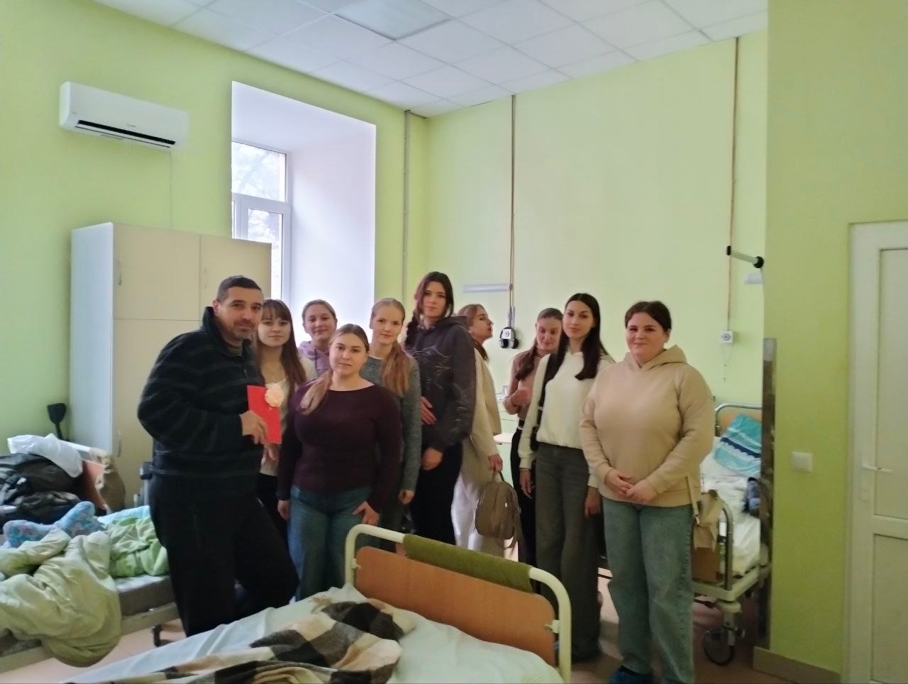 Згодом ми невеликою групою дівчат відвідали військовий госпіталь, щоб особисто передати ці листівки як подарунок.