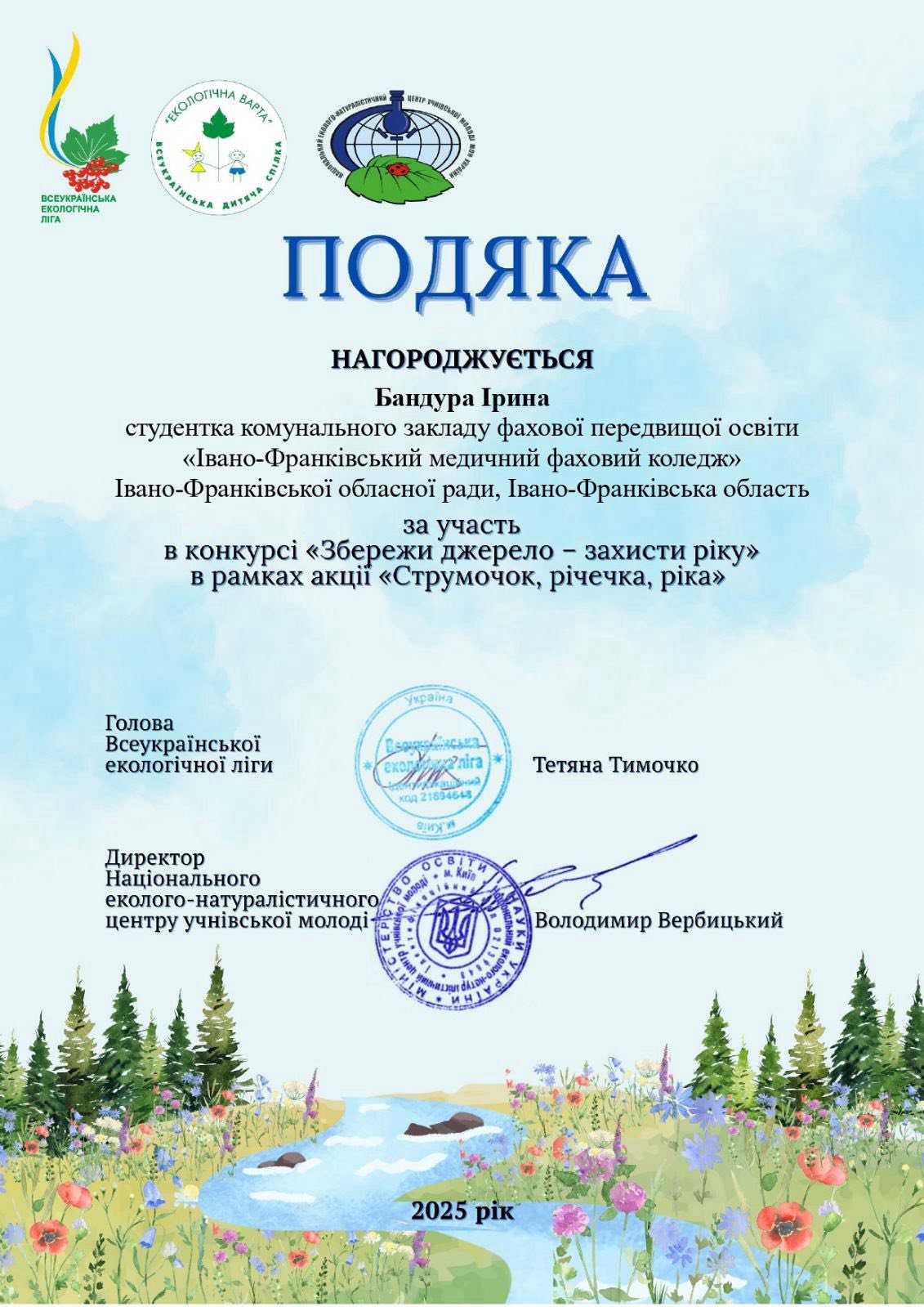 Участь здобувачів освіти у Всеукраїнському конкурсі "Збережи джерело – захисти ріку" в рамках акції "Струмочок, річечка, ріка"