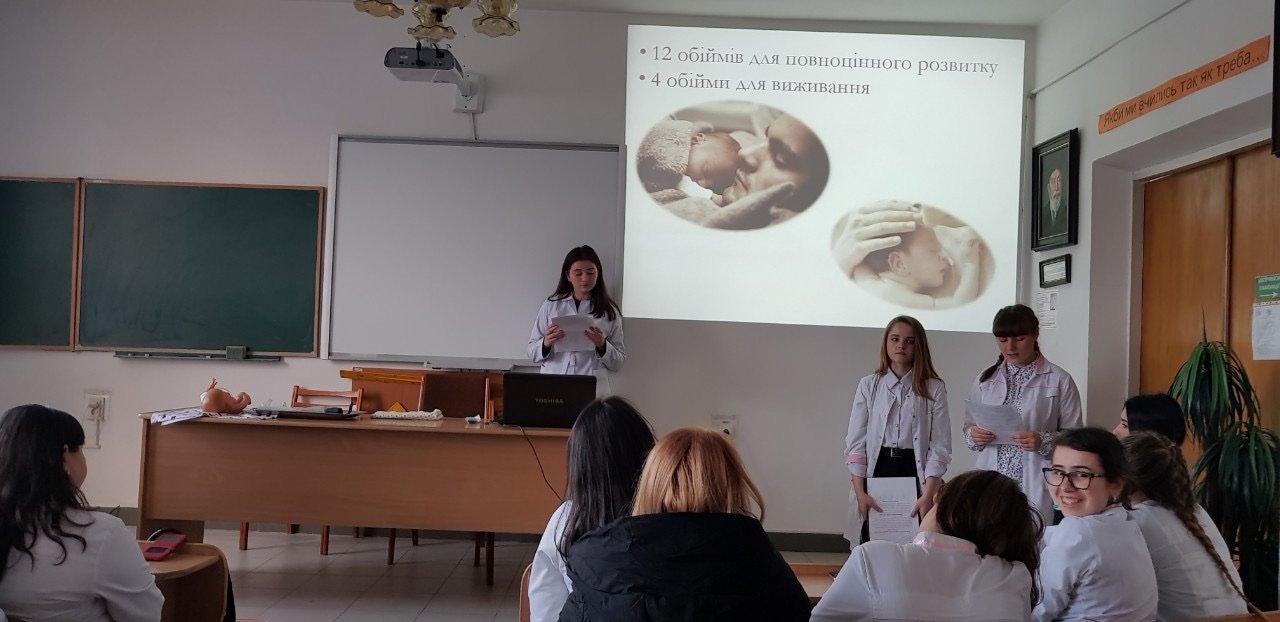 З метою удосконалення практичних та теоретичних знань з предмета «Педіатрія» та проведення санітарно-просвітньої роботи серед породіль, студенти III курсу 5 групи під керівництвом викладача Пинило М.С., провели бесіди з породіллями ОПЦ під назвою «Дбайливий догляд за малюком з перших днів життя».