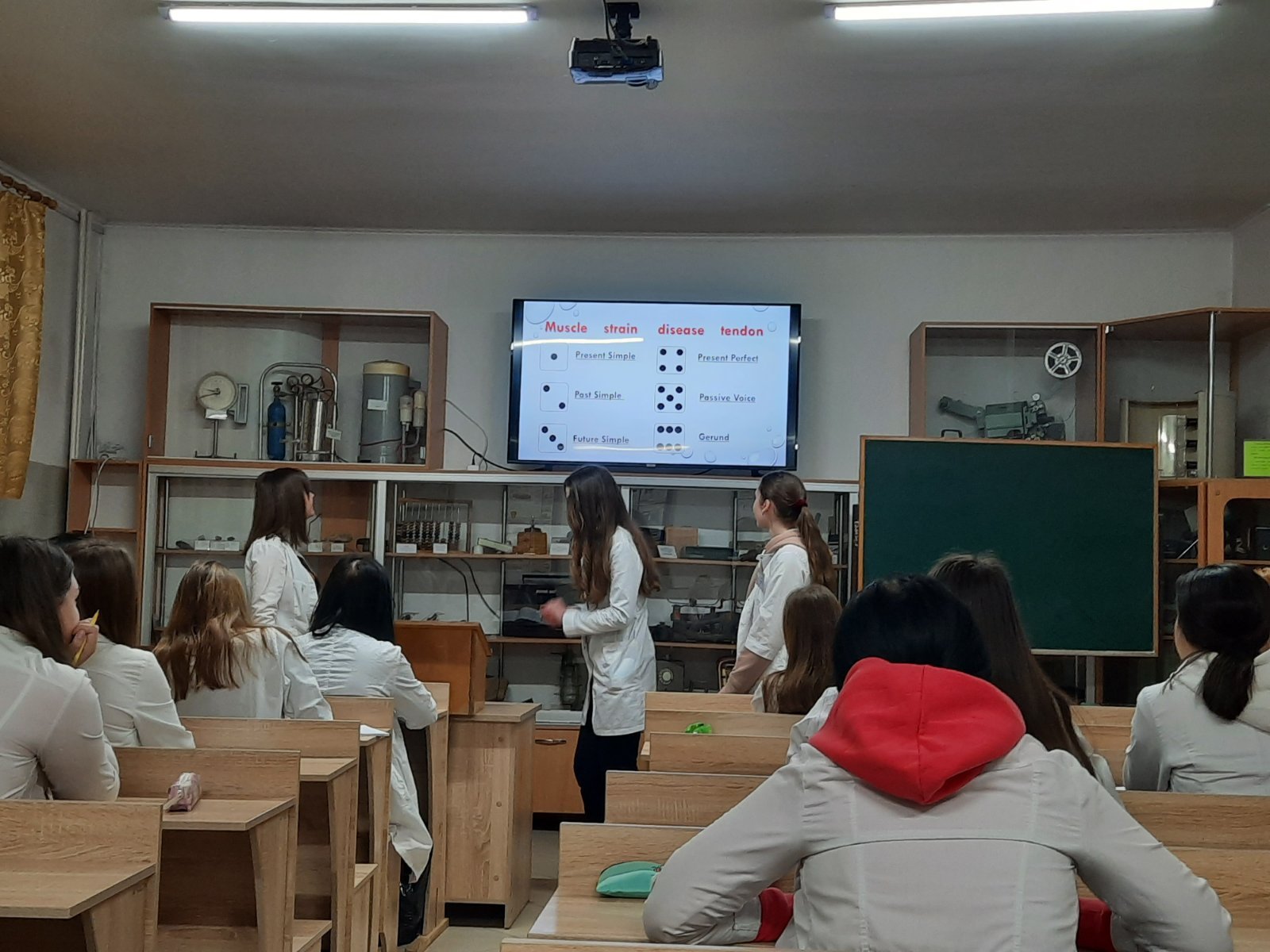 Студенти були залучені до різних видів мовленнєвої діяльності: говоріння, читання, аудіювання, письма. Ними проявлена активність у виконанні різних видів завдань: лексичних та фонетичних вправ, монологічних повідомлень, граматичних тестів, вправ на розуміння прослуханого (пісня та відео).Різноманітні цікаві вправи, неординарні креативні методи перевірки вивченого зробили заняття цікавим та динамічним.