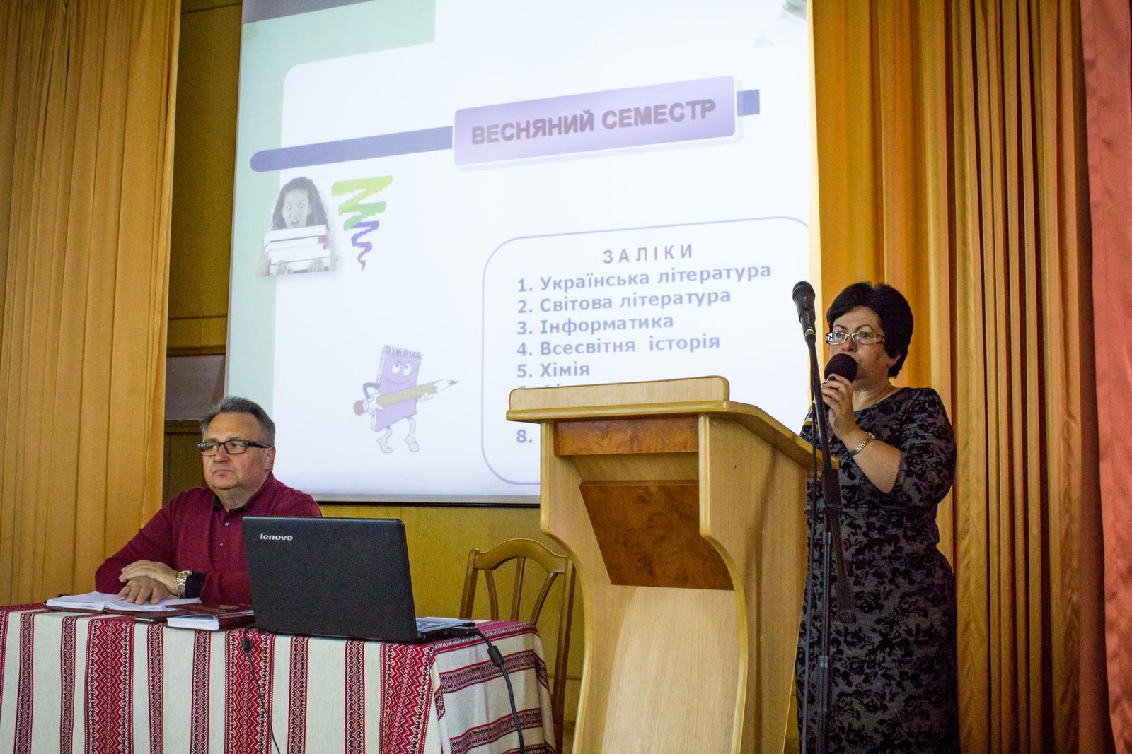 Директор закладу В. В. Стасюк і заступник директора з навчально-методичної роботи О. Д. Воєвода з глибоким аналізом проблем та особливостей навчально-виховного процесу першого року навчання у коледжі.