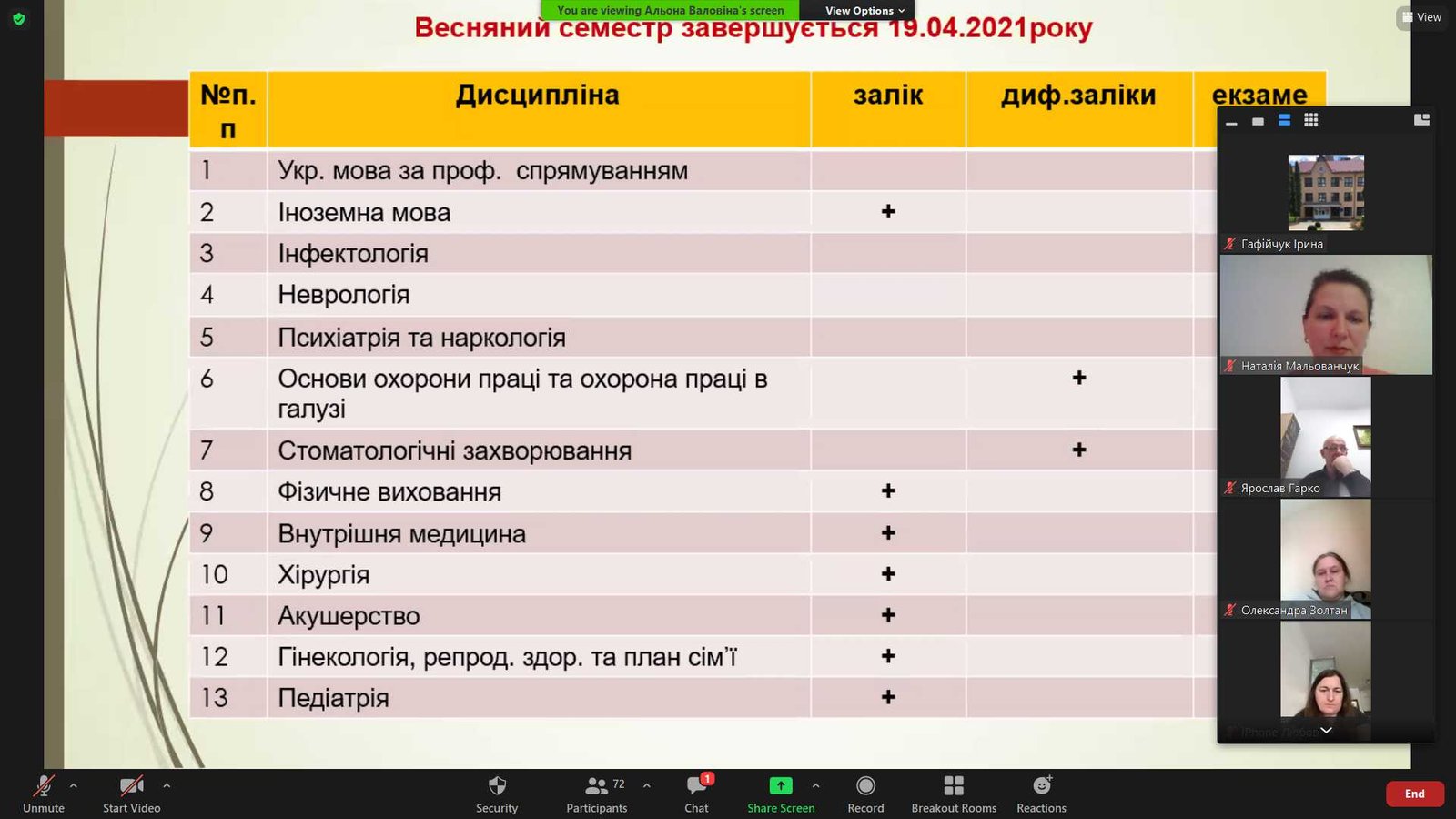 Між тим згідно з вимогами Міністерства освіти і науки України обов’язково повинен бути відеозв'язок під час дистанційного навчання. А в медичному коледжі ще однією вимогою є дотримання медичної форми – одягання білих халатів на заняття, навіть якщо вони вдома. На цьому наголосили заступниця директора з виховної роботи Наталія Валеріївна Мальованчук та завідувачка відділення Альона Миколаївна Валовіна.