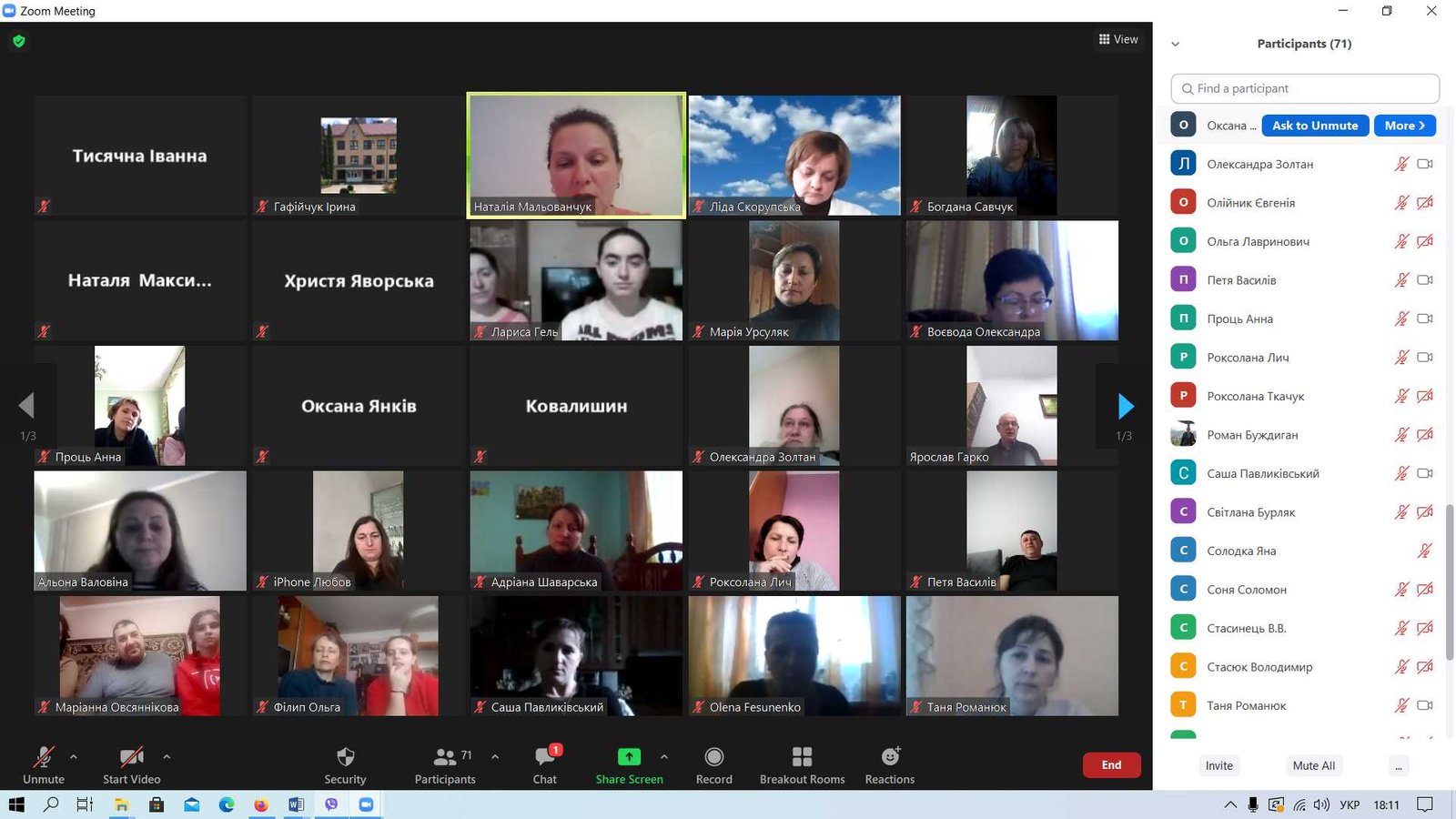 Загалом на зв’язок на платформі Zoom вийшло 75 учасників батьківської конференції. Тішить, що батьки самі чи з допомогою своїх дітей освоїли (вимушено, і нема на те ради) такий формат спілкування. Але представників коледжу аж ніяк не тішить, що з цих 75 у 25 було виключене відео. І така ж картина зі студентами під час дистанційного навчання. Як викладачам проконтролювати їхню повноцінну участь в освітньому процесі? Зрештою, чи легко спілкуватися з темним екраном?