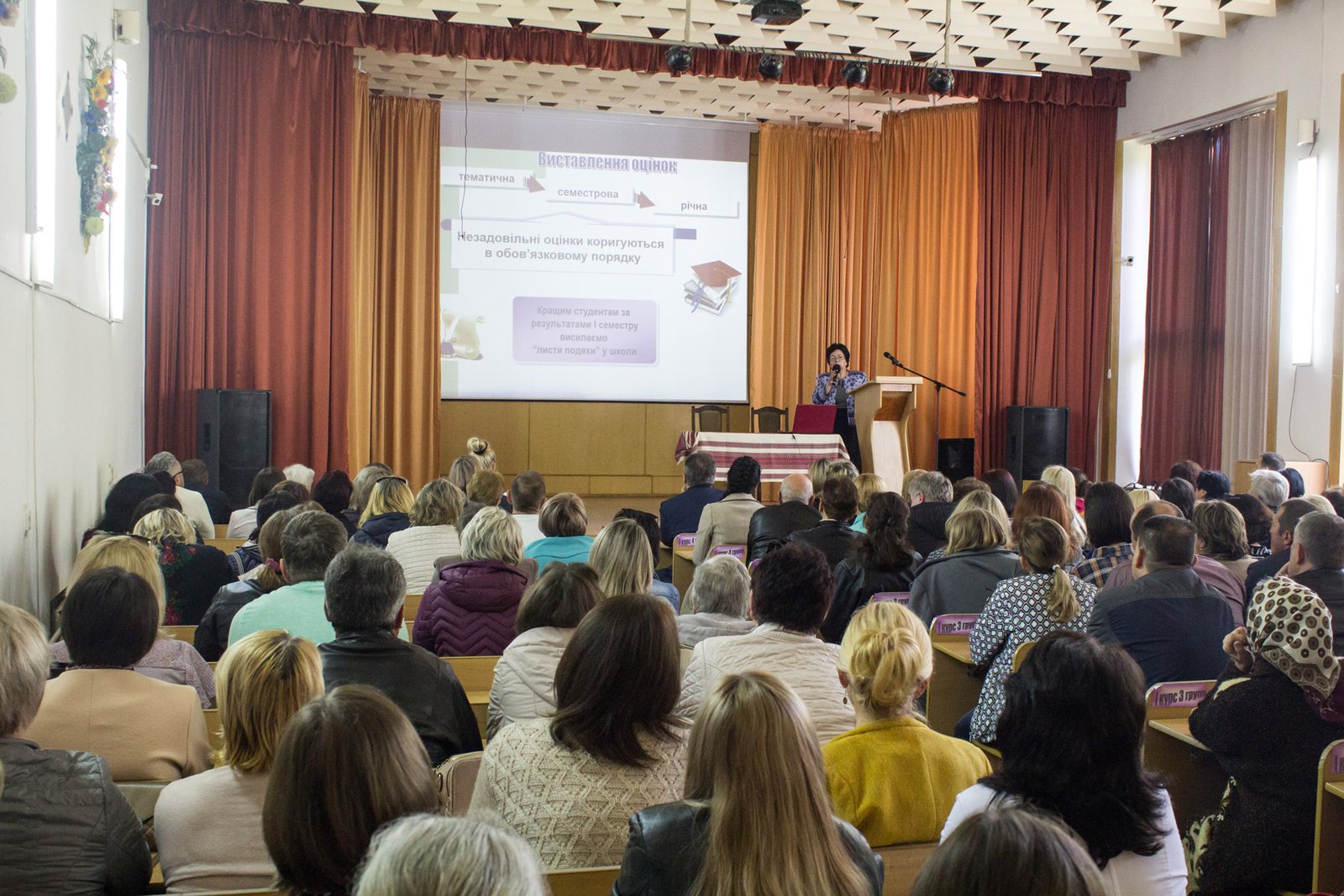 З аналізом проблем та особливостей навчально-виховного процесу першого року навчання у коледжі на зборах виступили: директор коледжу В. В. Стасюк і заступник директора з навчально-методичної роботи О. Д. Воєвода.