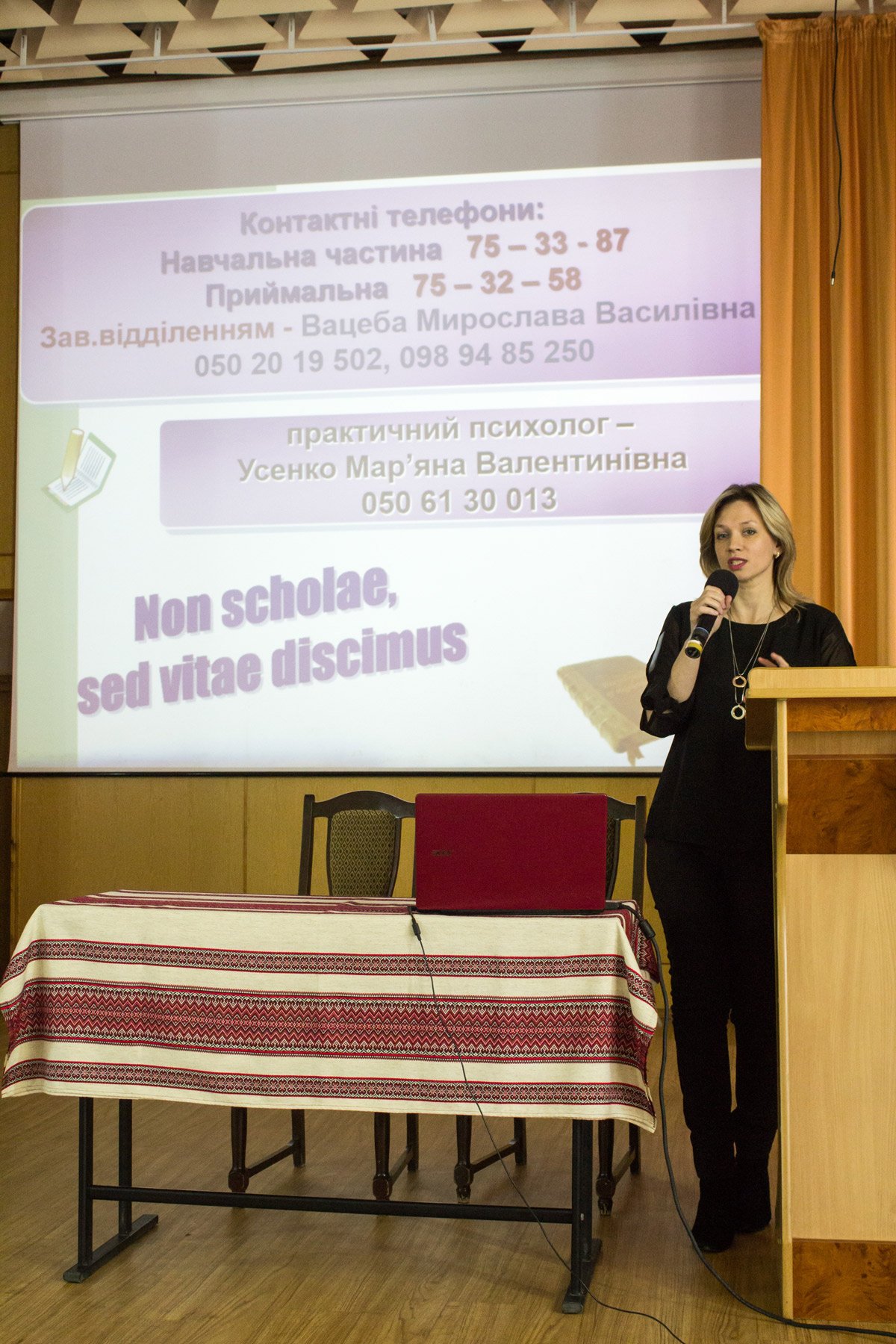 Практичний психолог коледжу М.В. Усенко розповіла батькам про особливості підліткового віку. Якісні зміни, що відбуваються в інтелектуальній та емоційній сферах особистості підлітка породжують новий рівень його самосвідомості, потреби у самоствердженні, рівноправному і довірливому спілкуванні з ровесниками і дорослими.