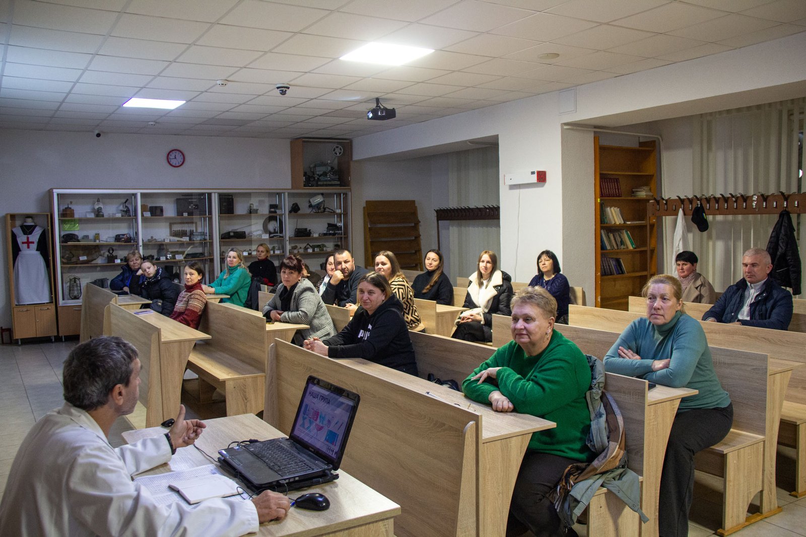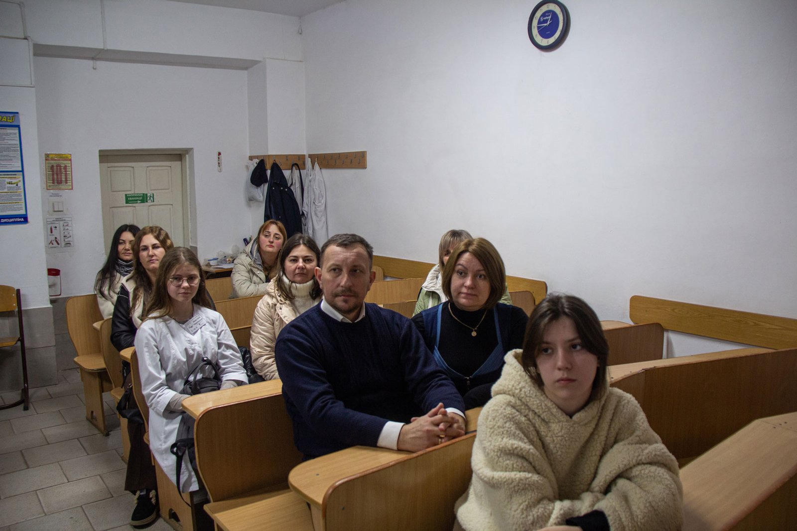 Після відзначення календарних свят: хвилиною мовчання за загиблими – Дня Гідності і Свободи та привітанням з Введенням у храм Пресвятої Богородиці спілкування проходило у два заходи: поки батьки майбутніх медсестер і акушерок в актовій залі зустрічалися з директором ІФМФК Володимиром СТАСЮКОМ і заступницею директора з навчально-методичної роботи Іриною КОНСТАНТЮК, батьки майбутніх фельдшерів йшли на години спілкування з керівниками груп в аудиторіях. А потім навпаки.