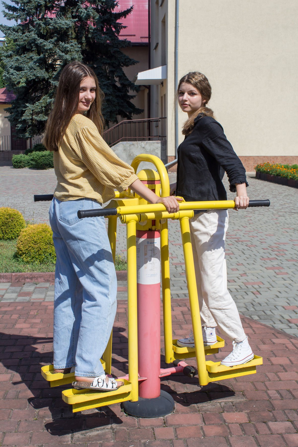 Та оскільки це субота, то поговоримо про фізичну активність і рух. Точніше – про 30-хвилинну перерву між іспитами з української мови і біології. Її абітурієнти проводять на спортивному тренажерному майданчику.