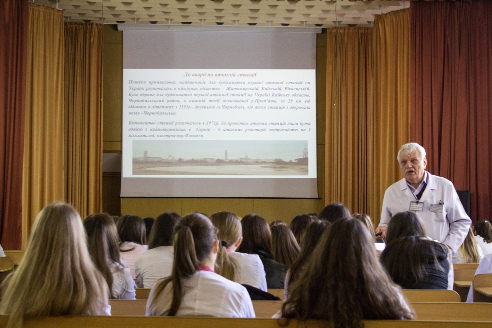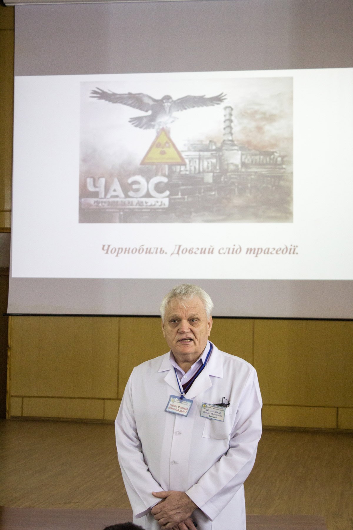 Викладач Івано-Франківського базового медичного коледжу Кузнєцов П.М.(ліквідатор I категорії з 1.11. 1986 року по 14. 04. 1987 року) розповів студентам про уроки героїзму і відваги людей різних професій, що стали на захист від некерованого атому і ніхто не думав про себе, розуміли, що це вкрай необхідно, і якщо не я, то хто ж. Це було випробування на мужність, щохвилини, на кожному кроці. Ризик наслідків страшної аварії ХХ століття став нормою життя ліквідаторів. Вони працювали у районі Прип’яті і Чорнобиля у складі інженерного полку по ліквідації наслідків Чорнобильської катастрофи, виконували різні роботи зі знезараження місцевості, займалися захороненням високорадіактивних відходів, як були розкидані на території другого та третього блоків. Було моторошно від побачених безлюдних вулиць, спорожнілих осель, доводилось минати загорожі з колючих дротів, які позначали радіаційну зону. Кожен, хто там працював, обов’язково мав дозиметр і накопичувач. Щодня у вечері перевіряли показники і, якщо рівень радіації перевищував норму (20 рентген), той покидав зону.
