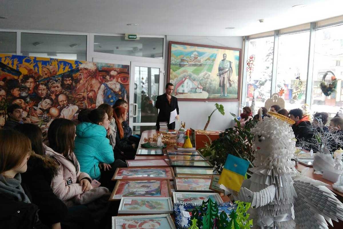 Тут ми прослухали розповідь історикознавця Віктора Стасюка про основні визначальні для державотворення події. Також багато дізналися про демографічу ситуацію в Україні. Студентів вразило те , що наше населення суттєво зменшилося. Деякі вчені підраховують, що спочатку нас було приблизно 80млн. Вражаюча цифра, чи не так? Проте війни, геноцид українського народу-Голодомор 1932-1933р., вивезення на примусові роботи до Німеччини та масова еміграція за кордон зробили свою справу. Тепер нас набагато менше, а саме-42млн . Найбільше вразила інформація те, що за часів Голодомору 1932-1933р. постраждало приблизно 9-12млн. українців, а це навіть більше за число євреїв та циганів , яких знищував А.Гітлер. Це означає , що Сталінський режим вбивав наш народ швидше, аніж Гітлер знищував євреїв…