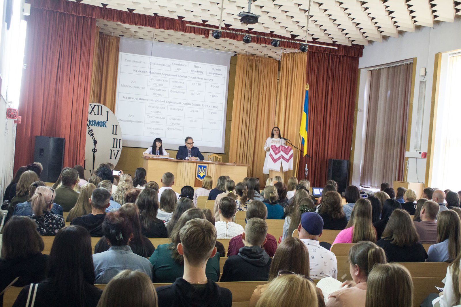 Людей прийшло у коледж так багато, що довелося доставляти лавки і крісла не лише в актовій залі на 250 місць, а навіть на сцені. І як тільки зал був заповнений, розпочали зустріч з майбутніми абітурієнтами хвилин на 15-20 швидше. Бо всі бажаючі однаково б не вмістилися. То ж інших вступників у цей час скеровували на екскурсію коледжем.