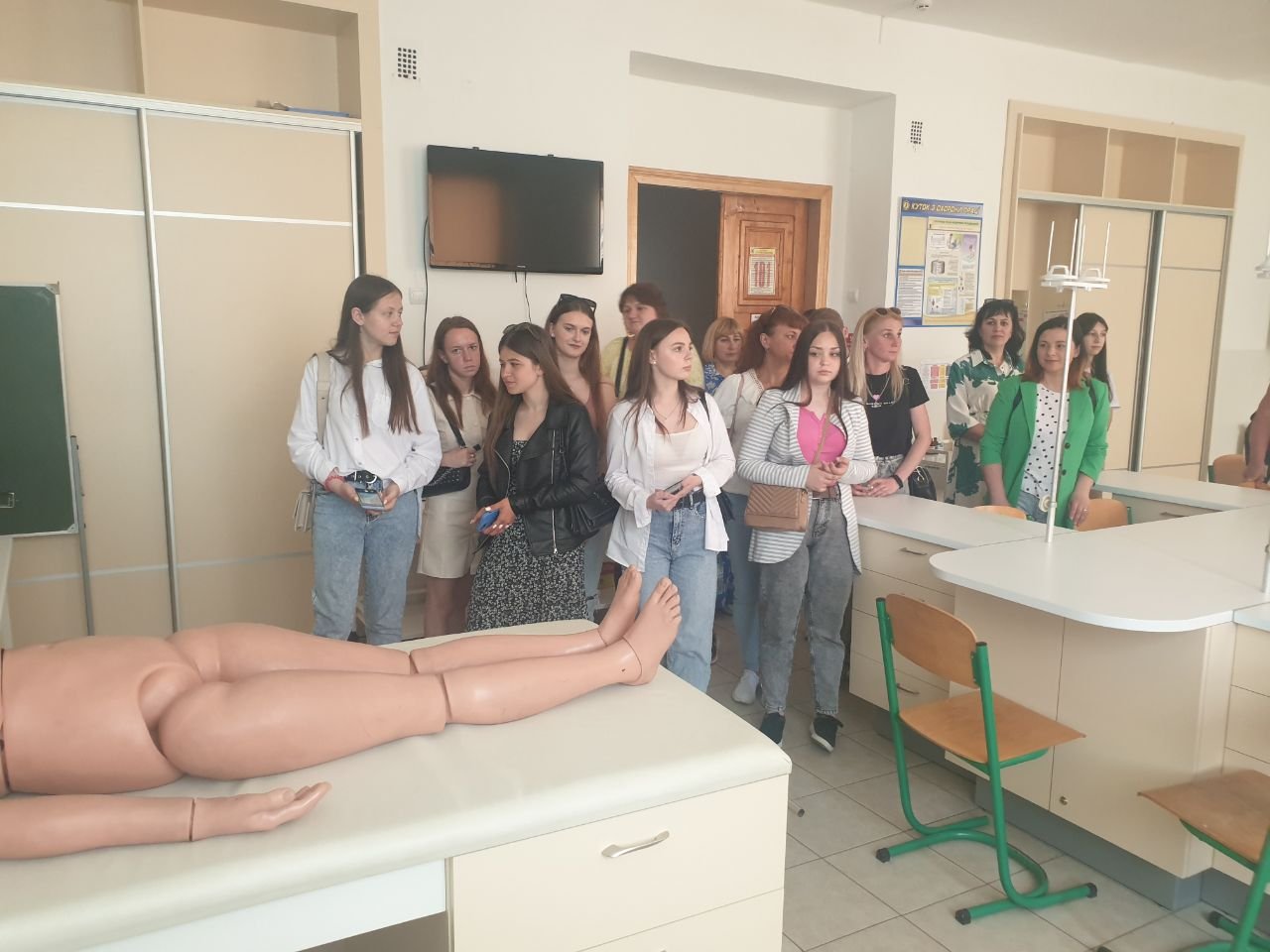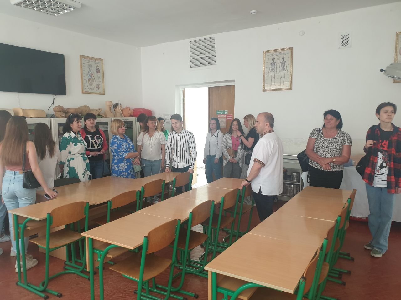 Поки одна група вступників і батьків спілкувалися в актовій залі з представниками адміністрації і приймальної комісії, для інших заступник директора з навчально-виробничої роботи Ярослав Олександрович Гарко, заступниця директора з виховної роботи Наталія Валеріївна Мальованчук, завідувачка відділення Мирослава Василівна Вацеба, помічниця директора з кадрової роботи Наталія Михайлівна Мельник, викладач хірургічних дисциплін Володимир Миколайович Яцків провели екскурсію аудиторіями, тренажерними кабінетами коледжу, бібліотекою, спорткомплексом, ознайомили усіх з матеріально-технічною базою ІФМФК.