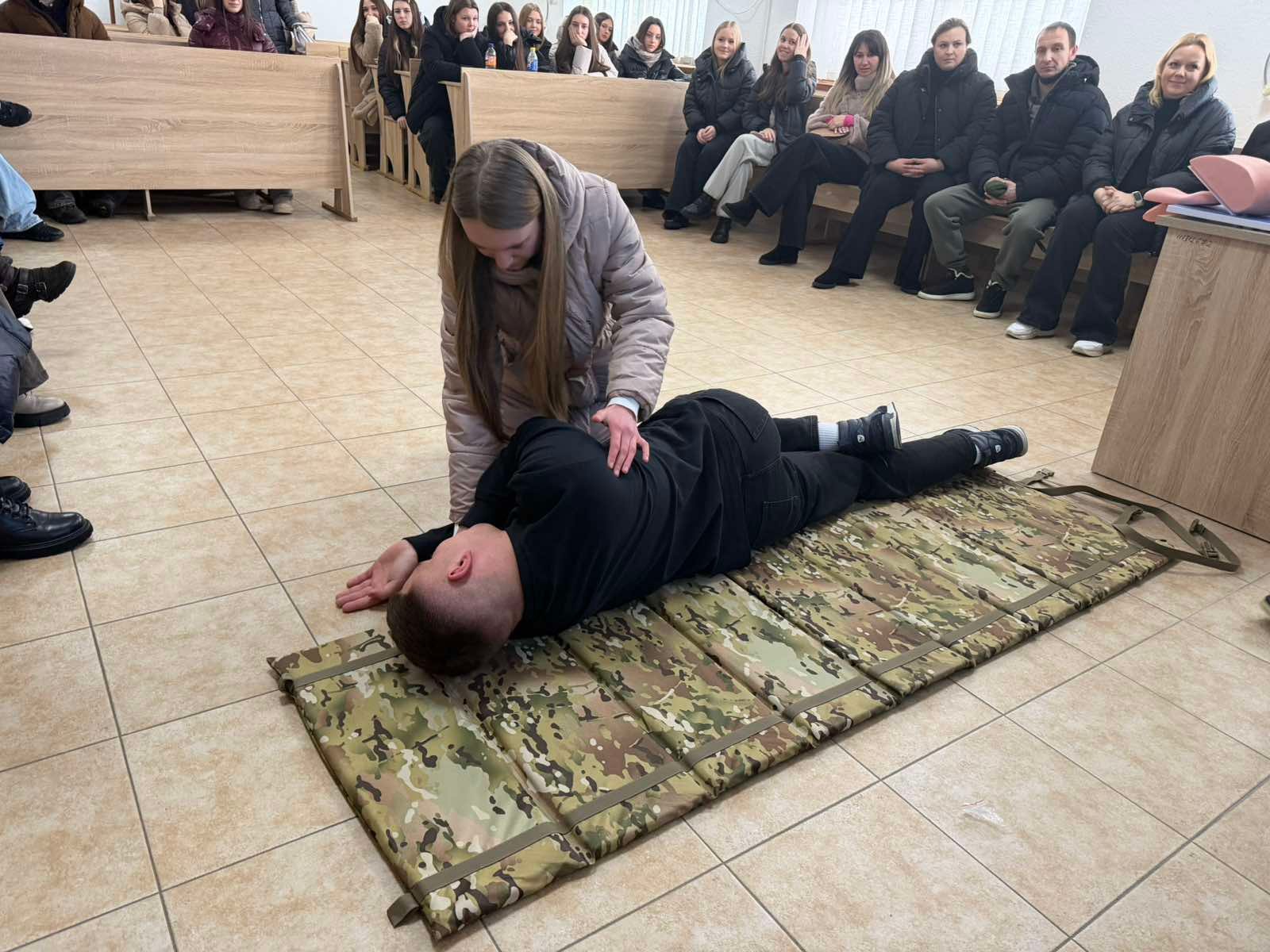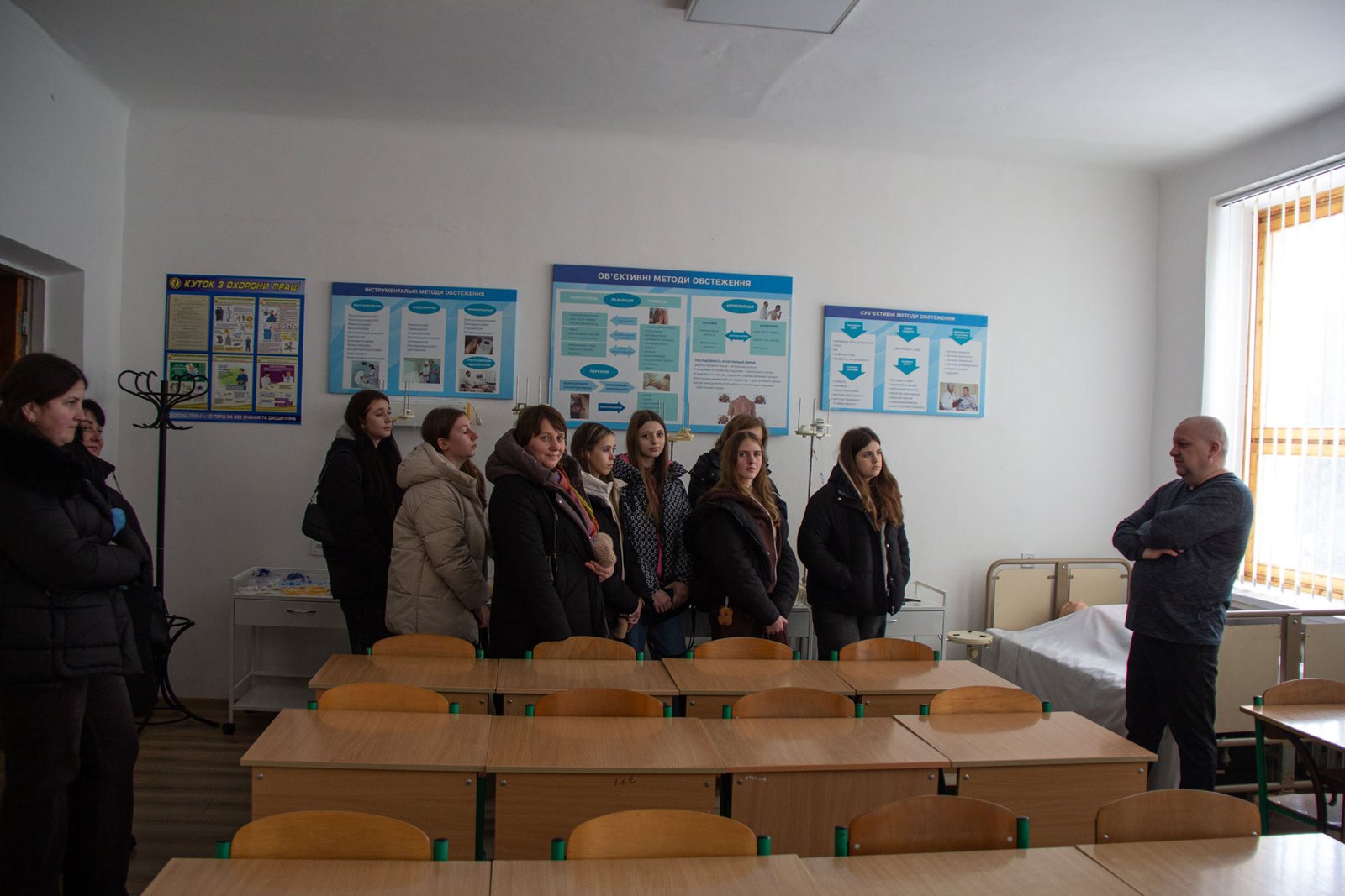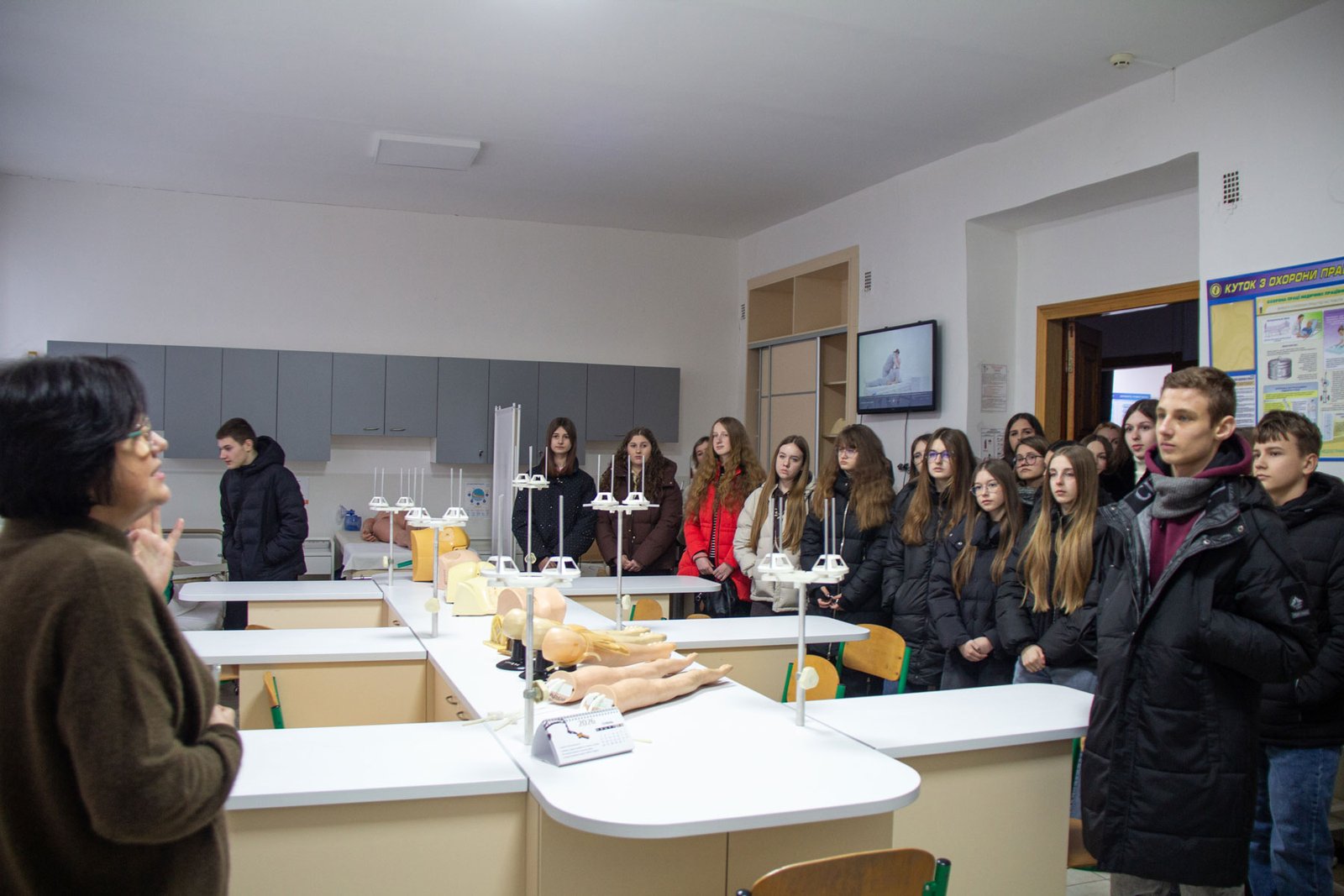 На завершення, після двогодинного спілкування у залі, для майбутніх абітурієнтів завідувачі відділень провели екскурсію коледжем. Діяли чотири локації, де майбутні студенти могли не лише побачити навчальні аудиторії, тренажерні зали, а й самі спробували накладати турнікети чи виконувати інші маніпуляції. Найактивніші теж отримали призи. Подбали і про тих, хто приєднався дистанційно: здійснити екскурсію коледжем допоміг відеоролик.