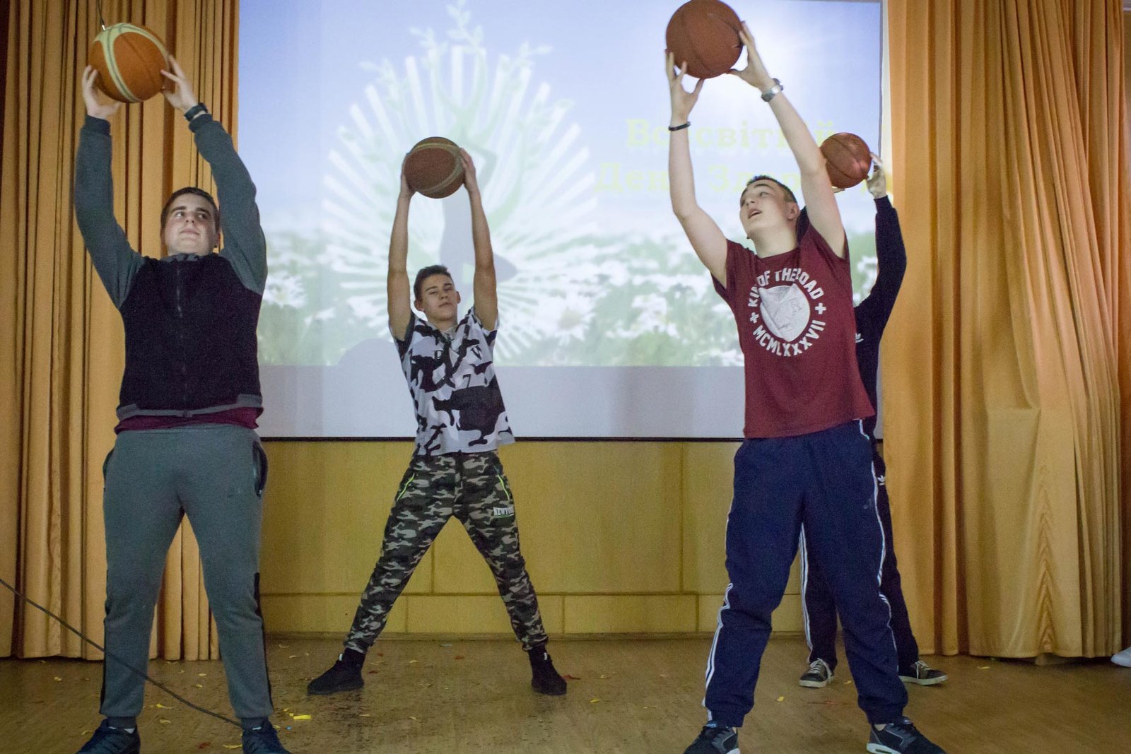 День здоров’я в коледжі розпочався о 1200 колективною гімнастикою.