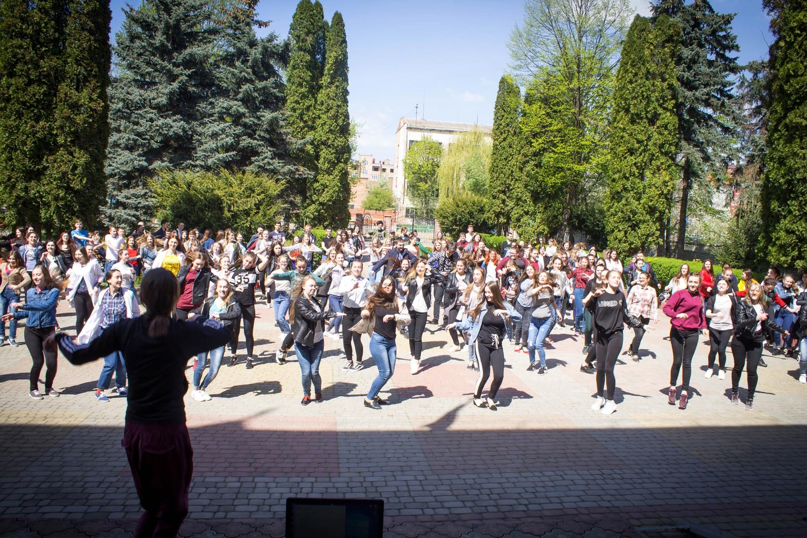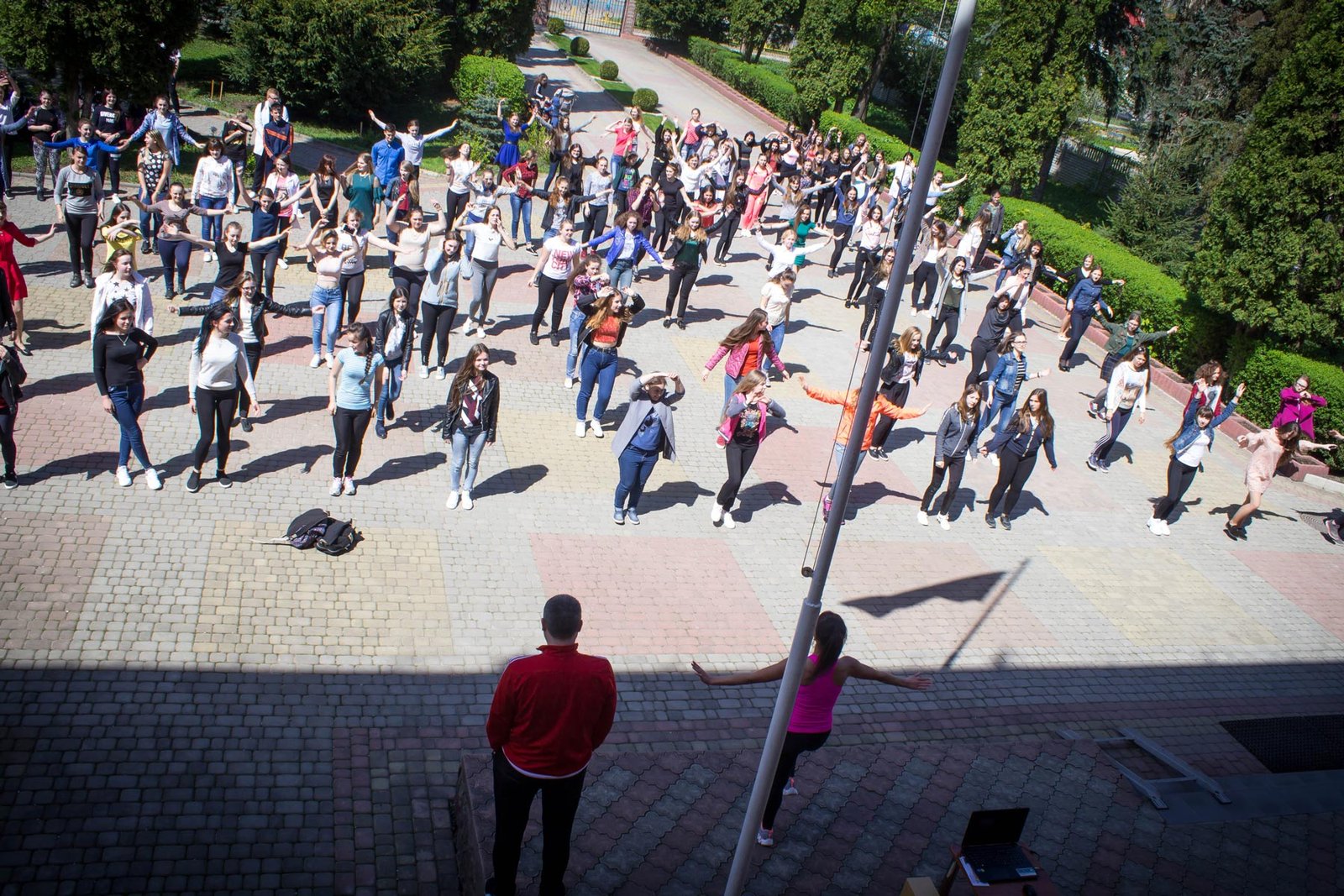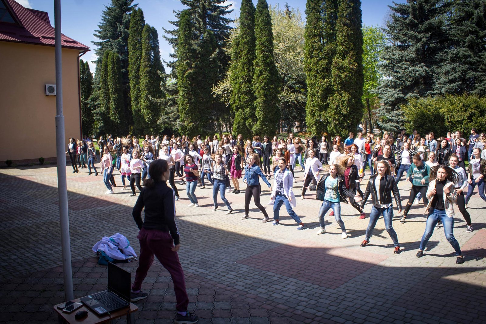 Студенти коледжу, в основному першокурсники, підготували музичний (танцювальний) флешмоб.