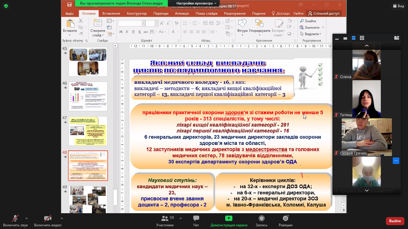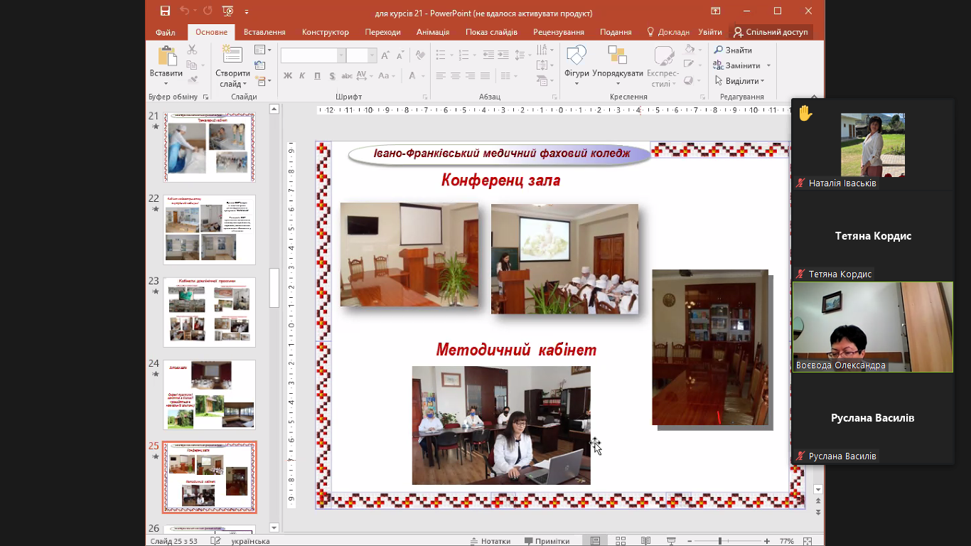 В Івано-Франківському медичному фаховому коледжі проходить дистанційне навчання не лише для студентів усіх курсів, а й для слухачів відділення післядипломної освіти. Як воно відбувається – на прикладі двох лекцій.