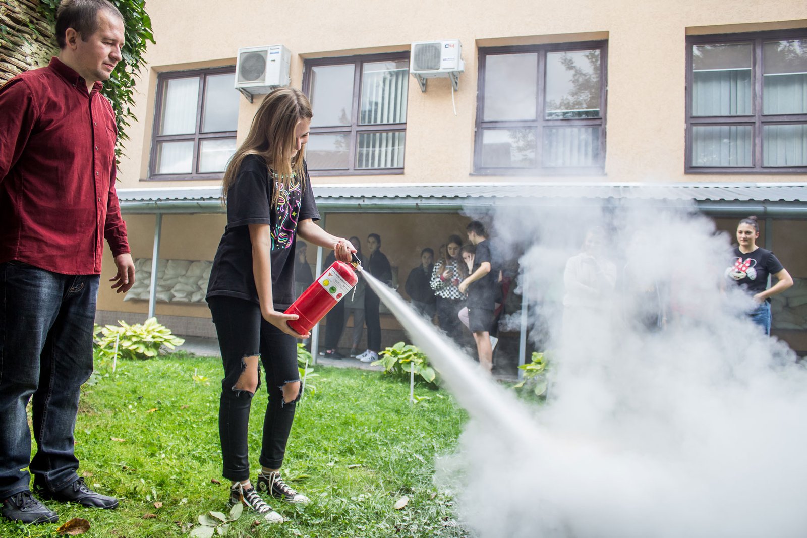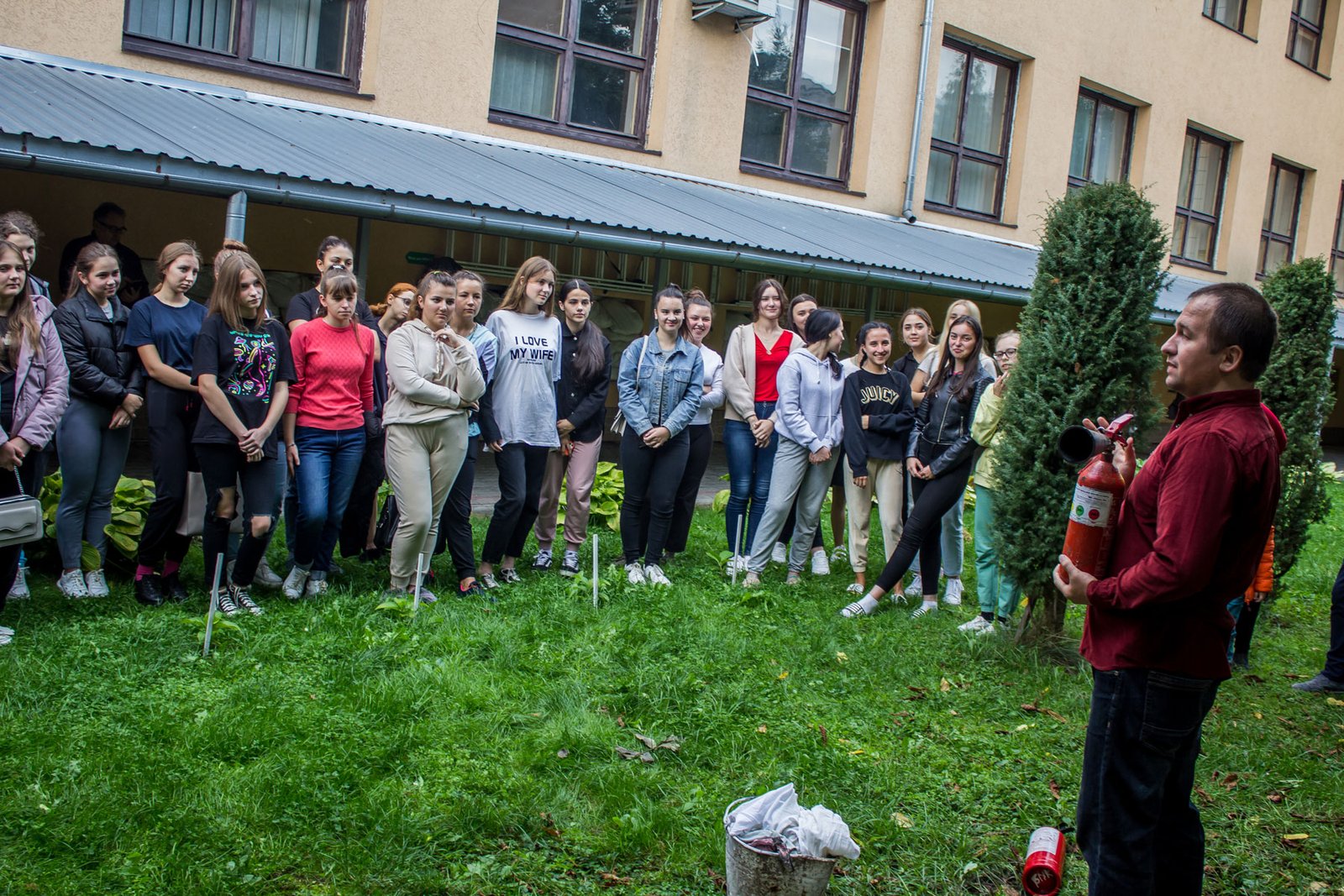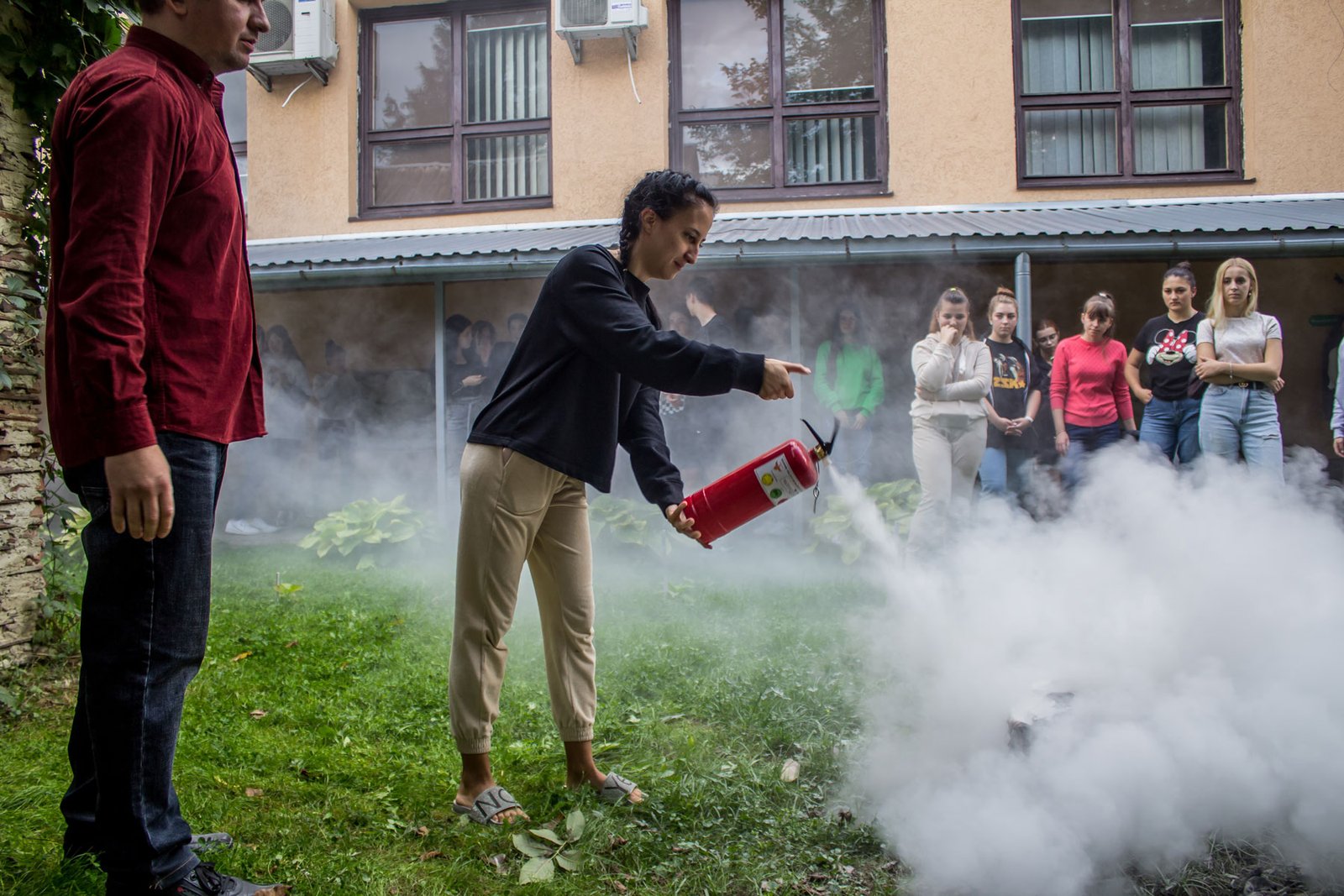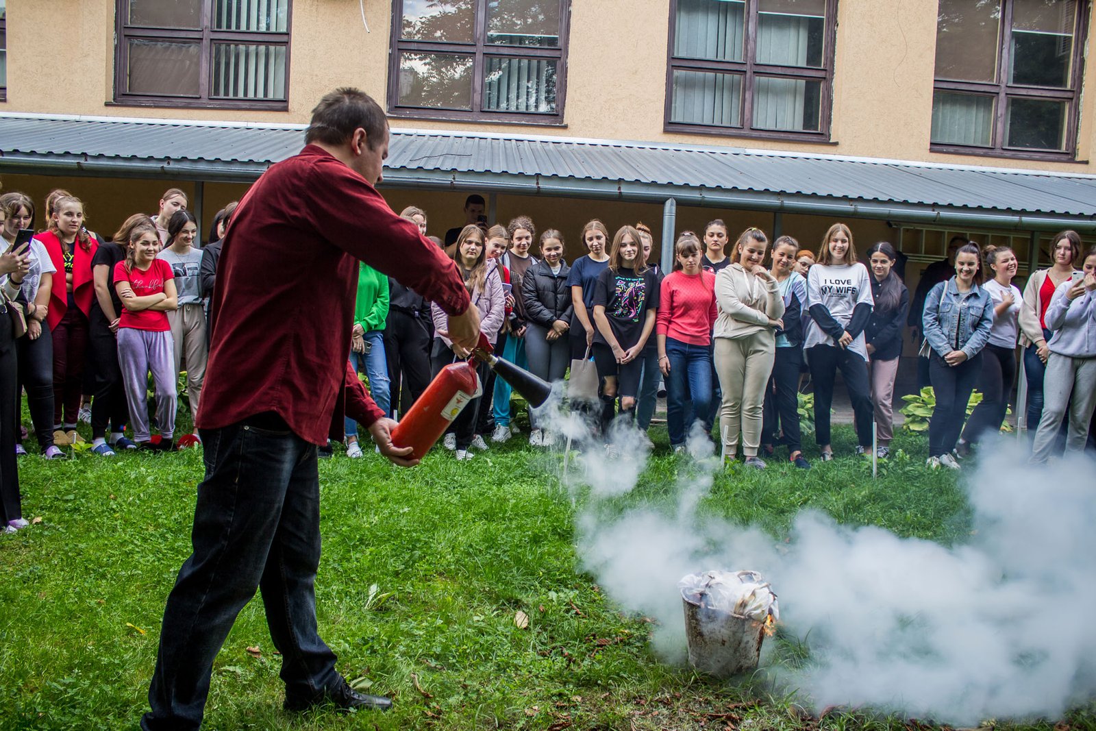 Студентам нагадали про основні вимоги щодо поводження в гуртожитку – від заборони куріння до обережності при користуванні електроприладами, розповіли про алгоритм дій при виникненні надзвичайних ситуацій, про використання первинних засобів пожежогасіння – вогнегасників та способи гасіння загорань. Студенти самі змогли виконати вправи з вогнегасником.
