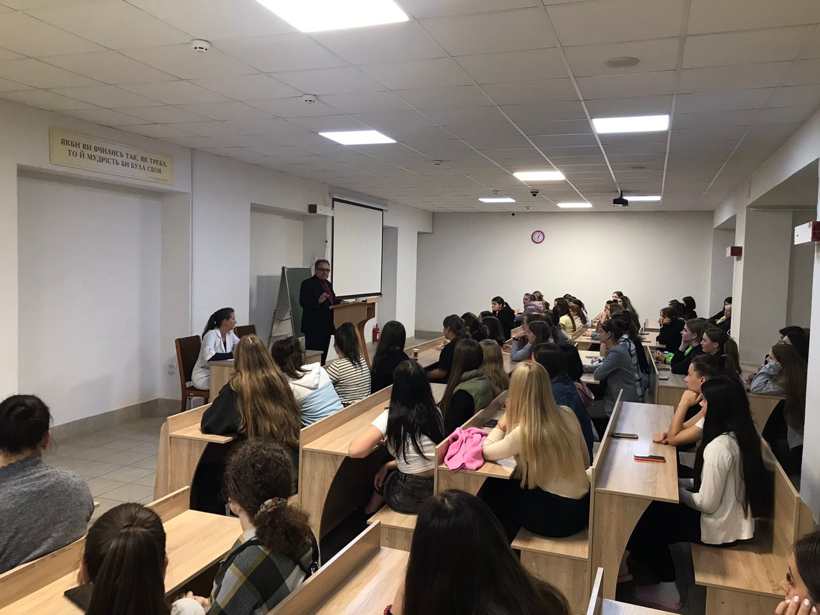 На цьому ж тижні для другокурсників і четвертокурсників, які проживають в гуртожитку, відбулося навчання з протипожежної безпеки. Його провели заступник директора з адміністративно-господарської роботи Олег Євгенович Барзій і фахівець цивільного захисту, викладач хірургічних дисциплін Микола Миколайович Веприняк. Це було показове заняття щодо дотримання правил пожежної безпеки та практичне відпрацювання схеми евакуації мешканців гуртожитку на випадок пожежі.