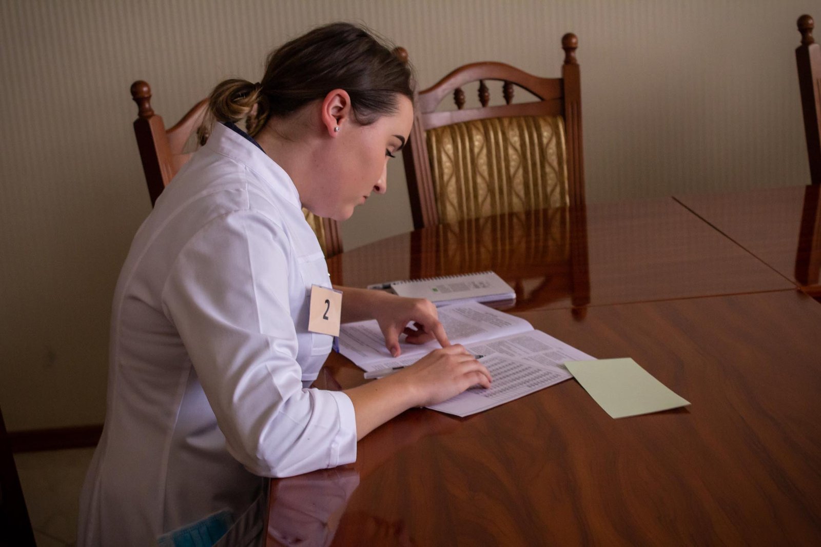 Конкурс проходив у два тури. Перший тур - тестування. Учасники конкурсу отримали індивідуальні комплекти завдань, які включали по 150 тестів з основних клінічних дисциплін.