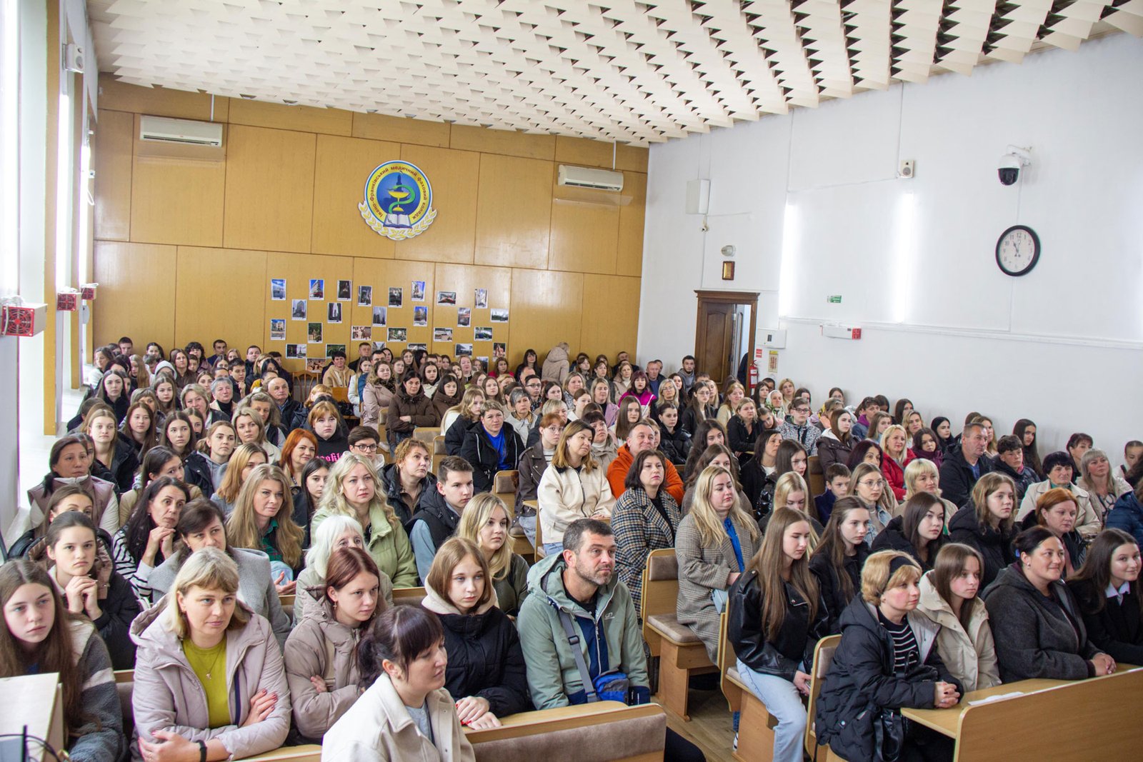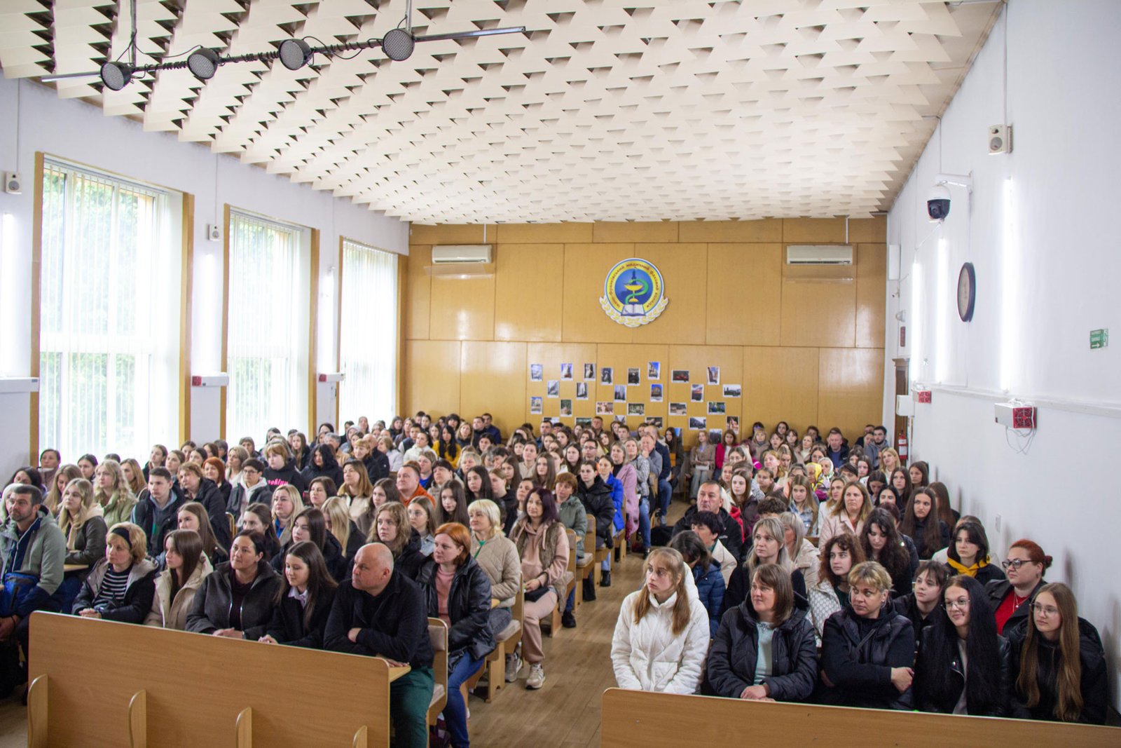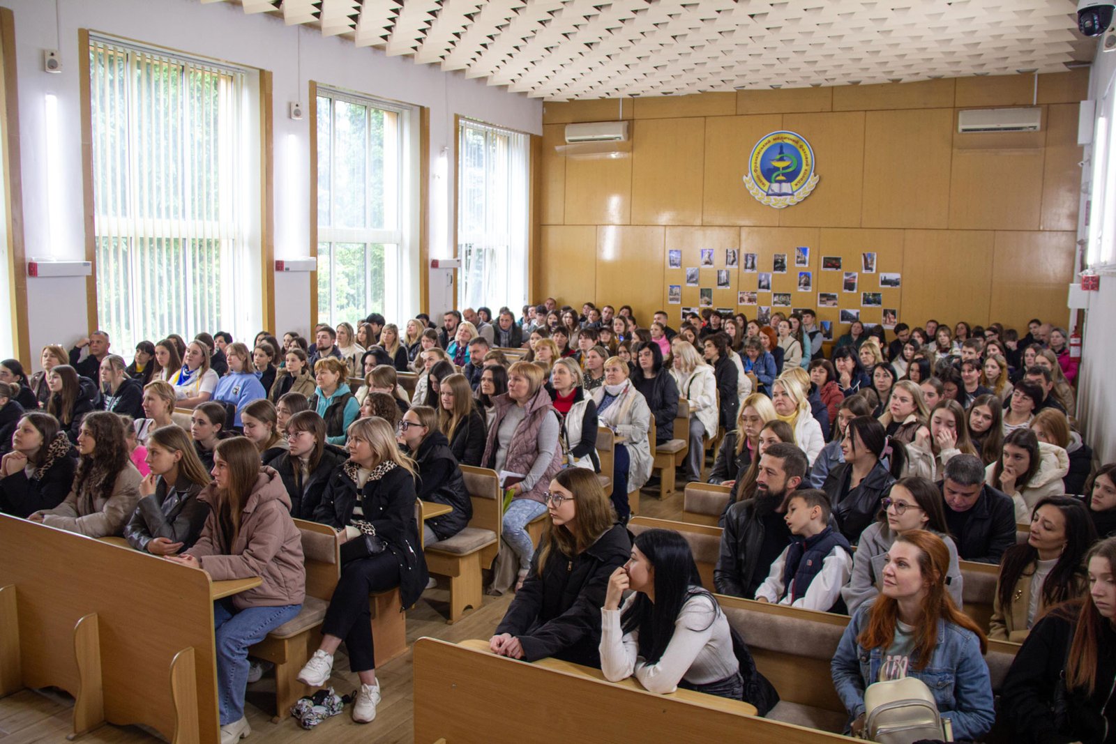А поки гості заповнювали актову залу, вони могли переглянути випуск YouTube-проєкту «КоледжCheck», в якому ведучий Олександр Педан, його донька Валерія та співачка ROXOLANA розповіли про Івано-Франківський медичний фаховий коледж.